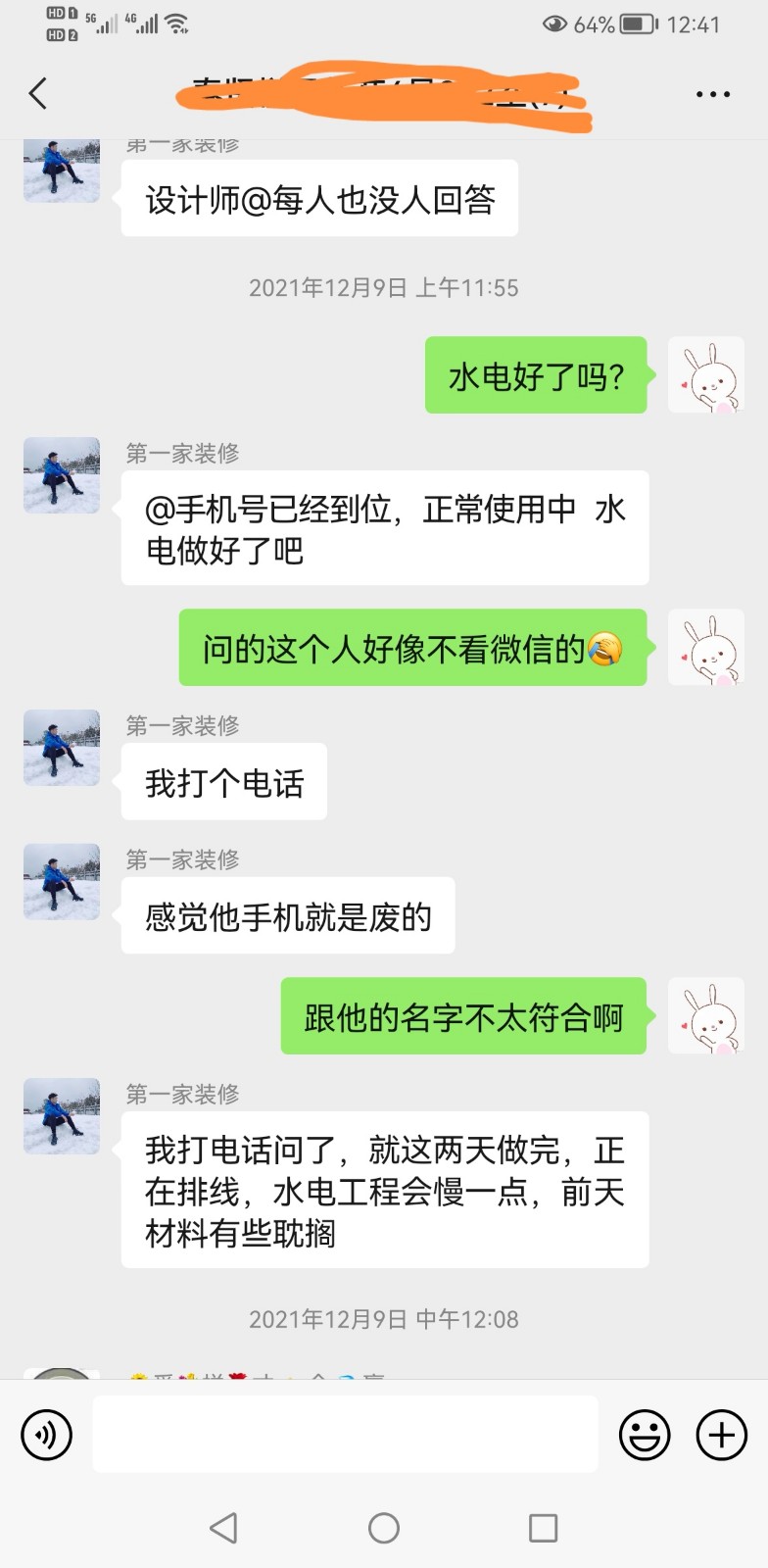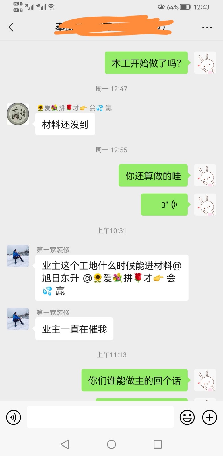 | 裝修面積 | 68m2 | 投訴人手機(jī) | 1364197**** | 被投訴人手機(jī) | 1370174**** |