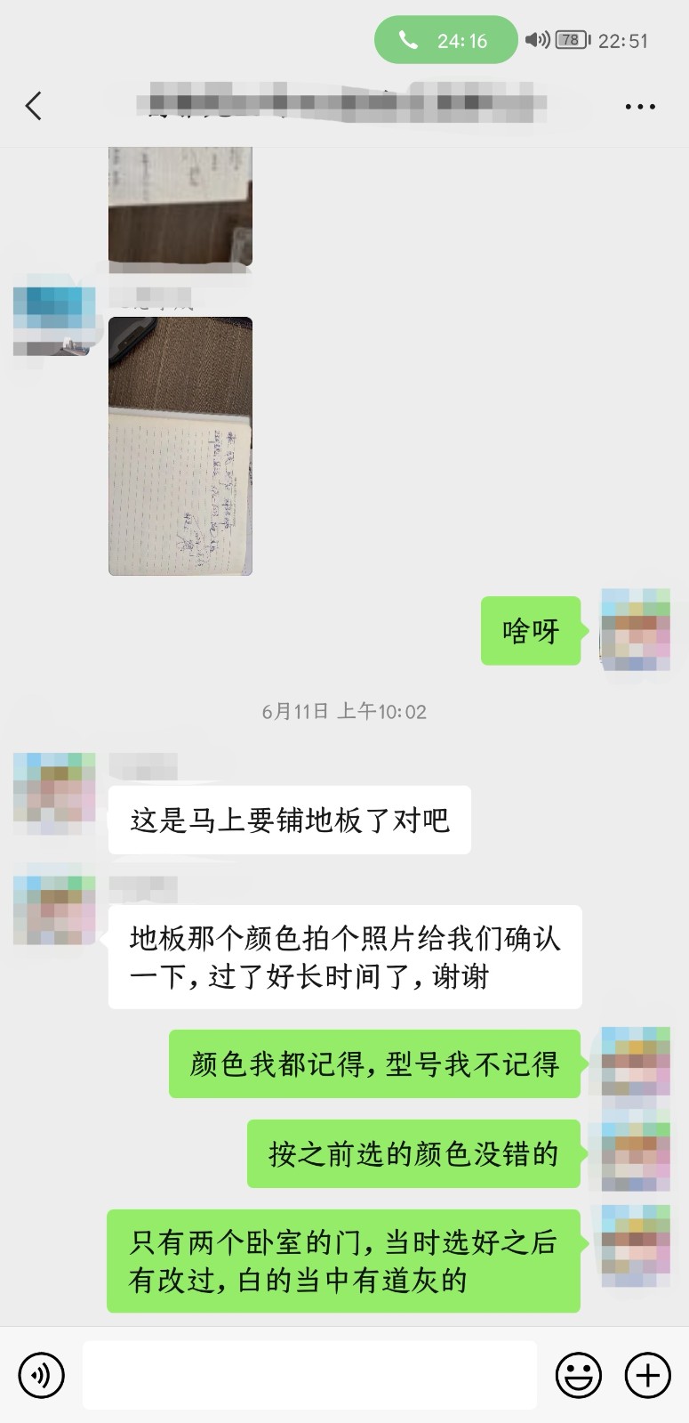 2021年11月裝修至今,期間經(jīng)歷2個(gè)月的疫情,裝修時(shí)間也過去了7個(gè)多月。解封后我們第一時(shí)間聯(lián)系上海駿投建筑裝飾設(shè)計(jì)有限公司溝通房子裝修,他們發(fā)了之前記錄的照片和我們核對(duì),我說我記得所有的顏色,但不記得具體的數(shù)字型號(hào),看到記錄照片中的門顏色被涂改成灰色,我再次強(qiáng)調(diào)門改的是白的當(dāng)中有道灰的款??墒窃谖覀兺耆恢赖那闆r下,昨天發(fā)現(xiàn)所有的門以及門套都被安裝成了灰色,發(fā)現(xiàn)之后立即打電話聯(lián)系上海駿投建筑裝飾設(shè)計(jì)有限公司的老板和設(shè)計(jì)師,通過電話和微信溝通,設(shè)計(jì)師堅(jiān)持這是我們的責(zé)任,與他無(wú)關(guān),和他們沒有關(guān)系。最終協(xié)商無(wú)果,未能解決問題。