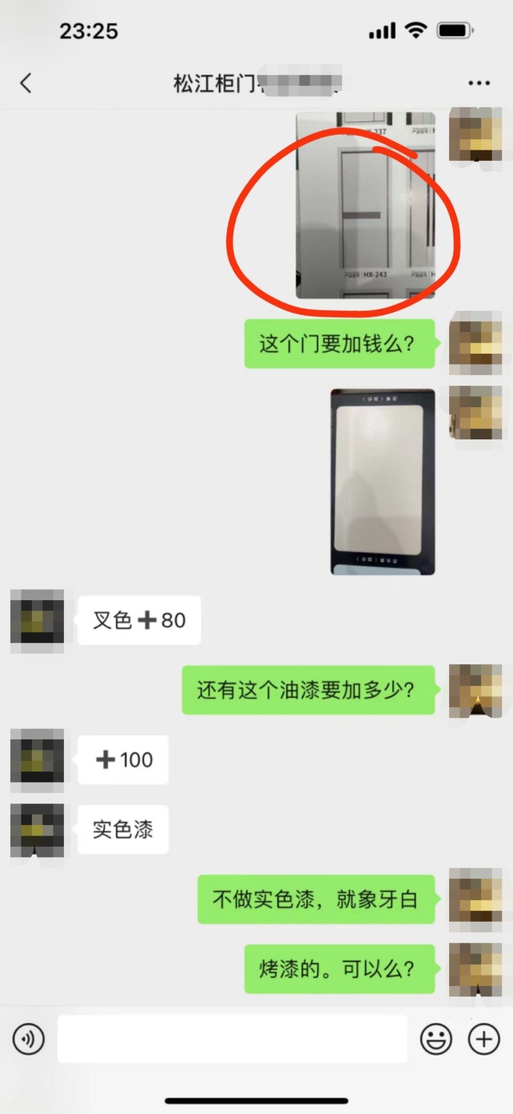裝修過程中我們?cè)谔暨x門的顏色與款式時(shí),設(shè)計(jì)師給了我們樣冊(cè)挑選,告訴我們有的款式需要額外增加費(fèi)用,當(dāng)時(shí)我們?cè)趦蓚€(gè)款式間猶豫,一扇是象牙白雙橫線豎線十字交叉的款式,另一扇是象牙白中間帶橫條灰的款式,我們比較中意后者,設(shè)計(jì)師說這個(gè)款式需要增加費(fèi)用,并當(dāng)場(chǎng)打電話給定做門的廠家,告訴我們噴漆80元/扇,2扇門共160元,我疑惑為什么中間噴條灰色就要增加80元的費(fèi)用,他回答我說這是噴漆工藝的關(guān)系,最終我們選擇了象牙白雙橫豎線條的款式。