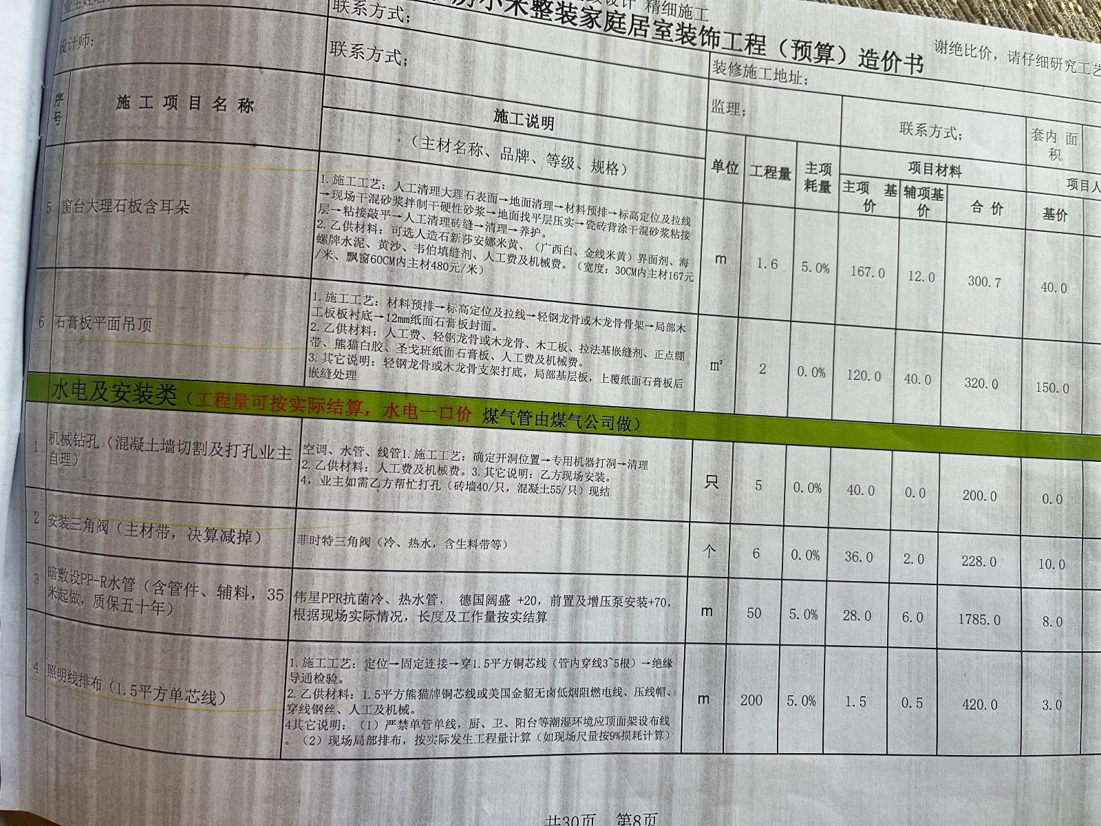 告知電線品牌和水管品牌,微信確認(rèn),合同說明