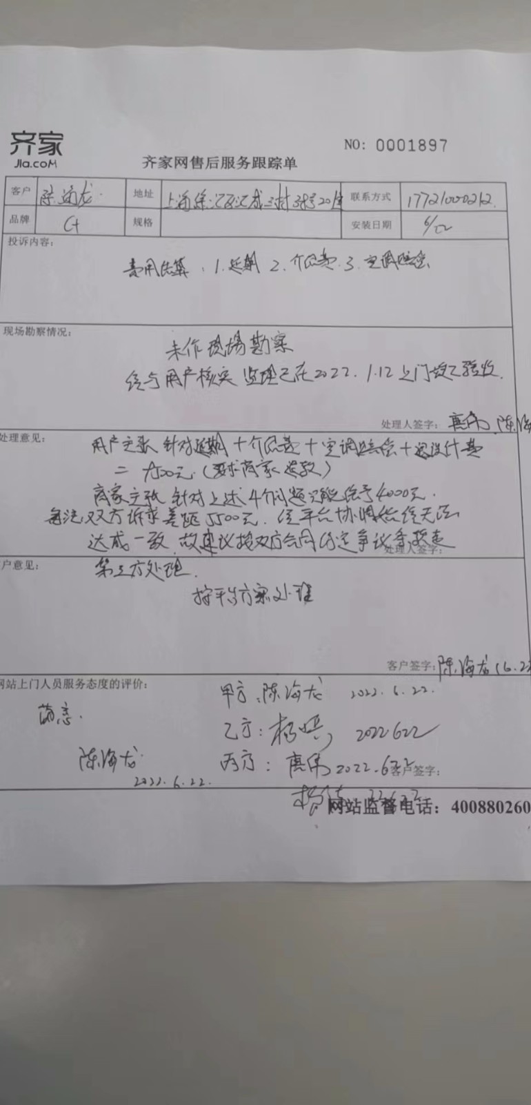 | 裝修面積 | 53m2 | 投訴人手機(jī) | 1330180**** | 被投訴人手機(jī) | 1391704**** |