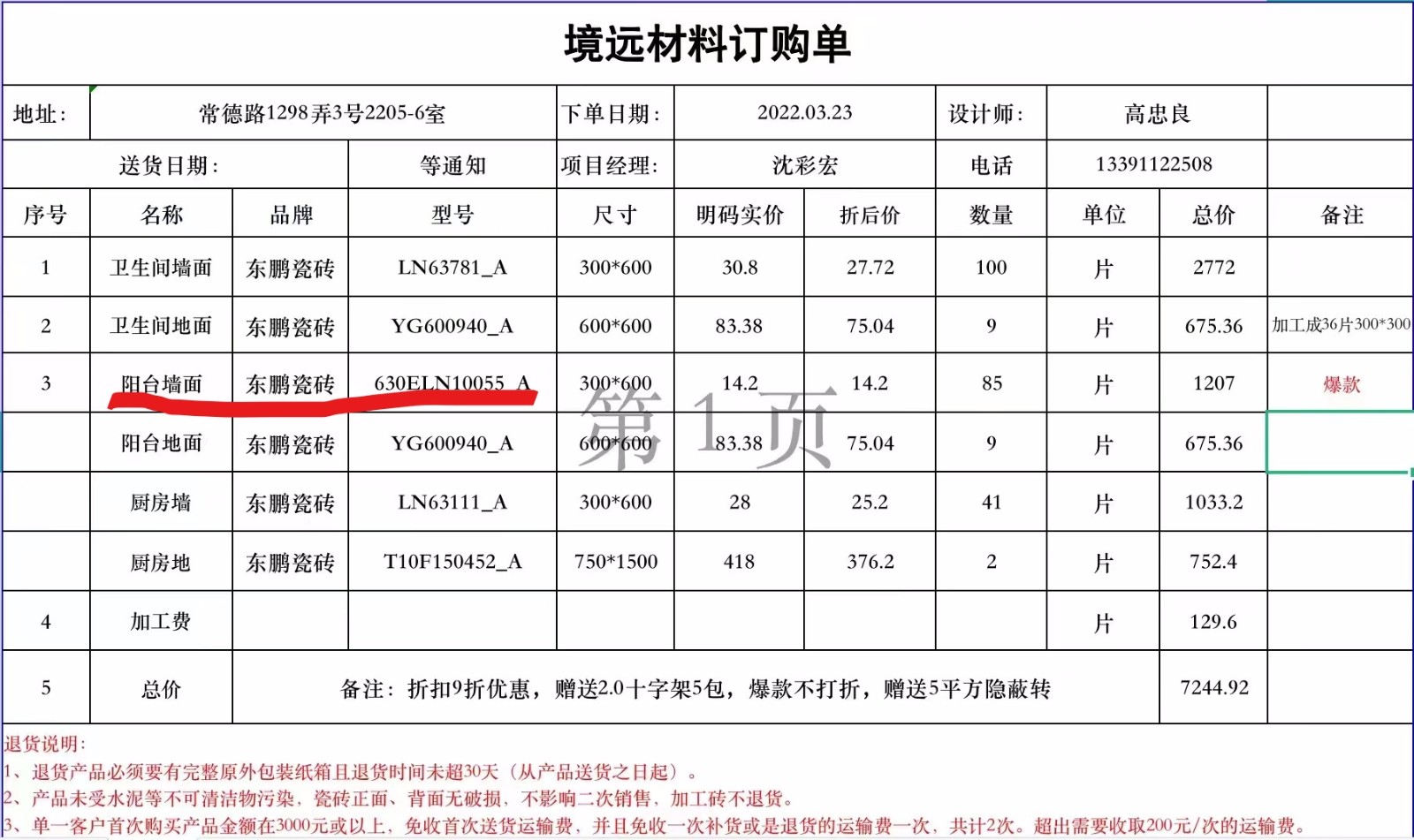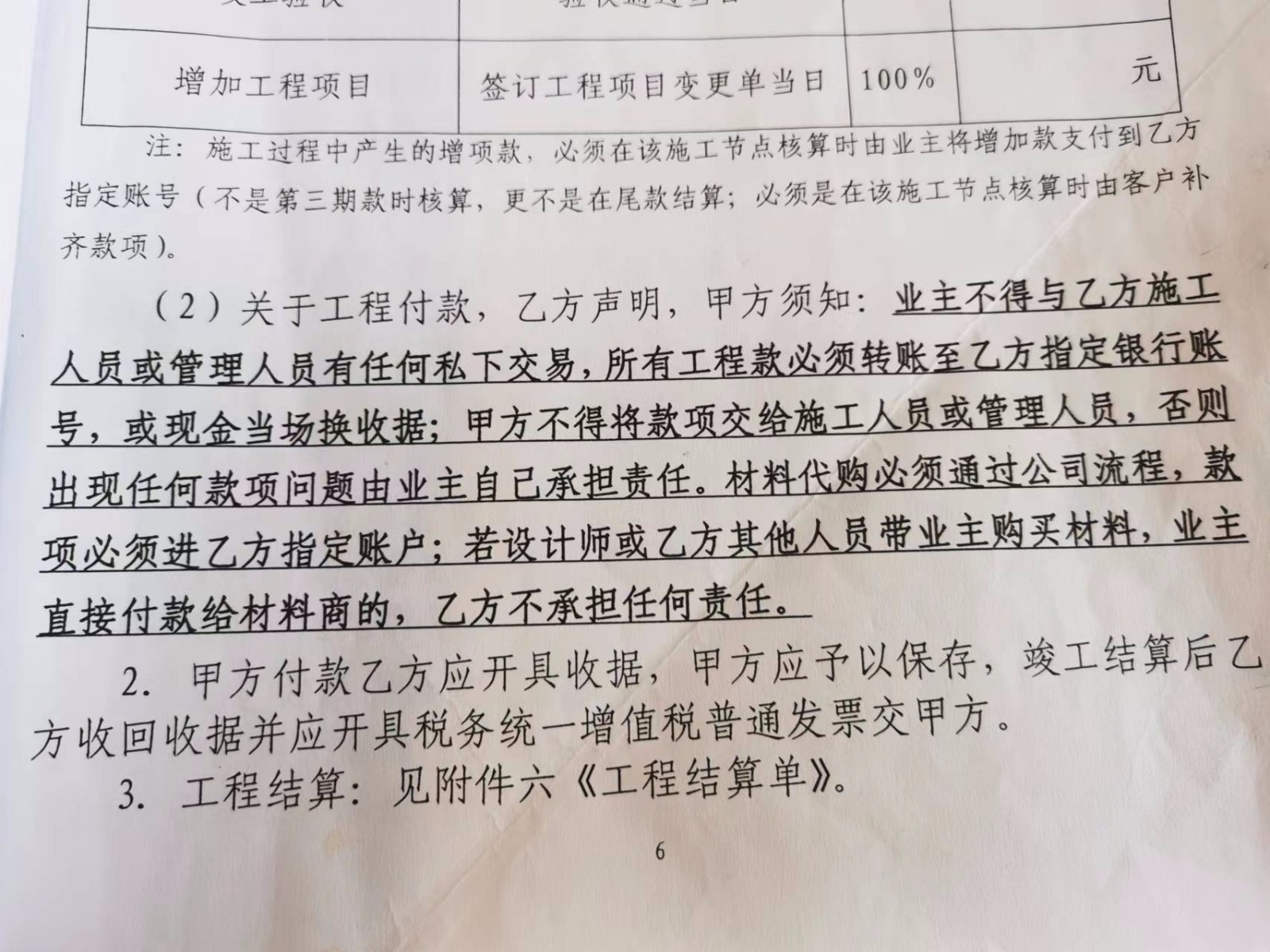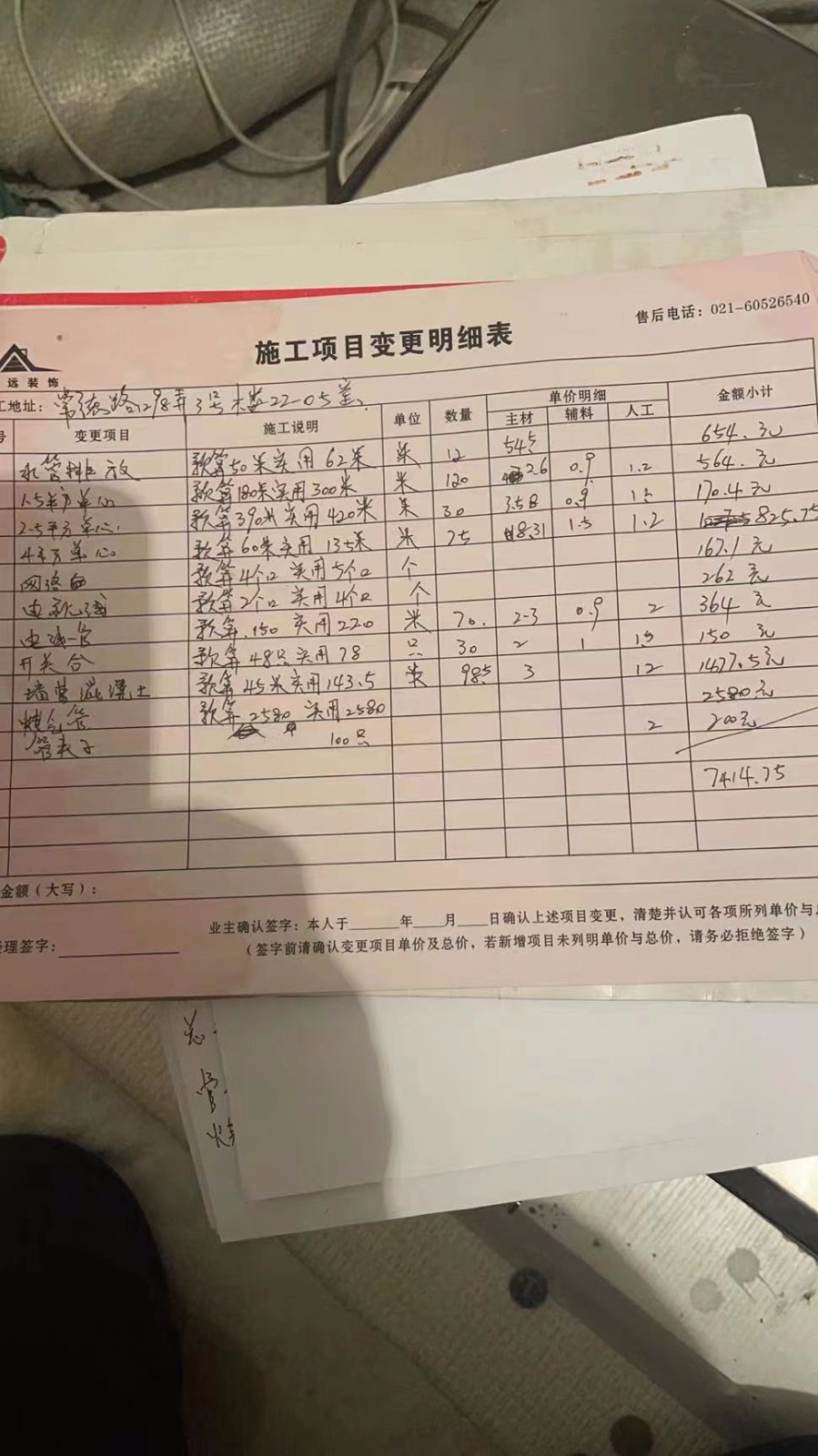 我是常德路1298弄3號2205業(yè)主,今年1月6日和上海境遠(yuǎn)裝飾設(shè)計工程有限公司簽訂裝修合同(合同編號8005503).工程為為部分承包,施工面積50平方米,工期為2022年1月8日至5月8日,總價款為人民幣118000元。合同簽訂后,我們按照合同按期支付各期款項。本來公司和我們約定水電工程完成后,3月9日和公司監(jiān)理薛士元一起驗收,后因薛稱未看到公司消息,就沒有驗收,3月13日我們?nèi)タ捶孔?,薛仍不在場,現(xiàn)場施工人員沈彩宏拿出一張驗收記錄單讓我們簽收,認(rèn)可水電施工質(zhì)量,全程未提過有材料,人工等增項事宜。3月16日,沈彩宏突然微信發(fā)來兩張項目變更明細(xì)表(見附件一、附件二),顯示增項有1萬3千多元,要求我們直接支付給他款項。我們得知后馬上和境遠(yuǎn)聯(lián)系并于3月中旬到他們門店,公司稱根據(jù)合同,我們不能和施工人員發(fā)生私下交易(見附件三),并承諾公司會到現(xiàn)場核實。此時上海尚未封閉,但是公司一直未去現(xiàn)場,后來因為疫情關(guān)系,小區(qū)封閉。解封以后,我們一直督促公司去現(xiàn)場核查,公司遲遲未去,我們不得已于6月12日親自到施工現(xiàn)場,現(xiàn)場施工人員沈彩宏又向我們索要工程增項款,讓我們直接給他。我們回復(fù)他公司禁止我們和施工人員私下發(fā)生交易,并且材料、人工費用要經(jīng)過公司核查認(rèn)可,提供蓋有公司公章并經(jīng)監(jiān)理簽字清單和材料發(fā)票,沈某執(zhí)意不肯,并強(qiáng)行扣留我父親不讓他離開現(xiàn)場。在此過程中,我們一直與門店經(jīng)理雷苗和設(shè)計師高良忠積極協(xié)商此事,但他們一直采取消極回避態(tài)度,不接電話。6月23日,監(jiān)理薛士元在微信群里發(fā)送項目變更明細(xì)單(見附件四、附件五),稱我們需支付各項人工、材料增項10728元。