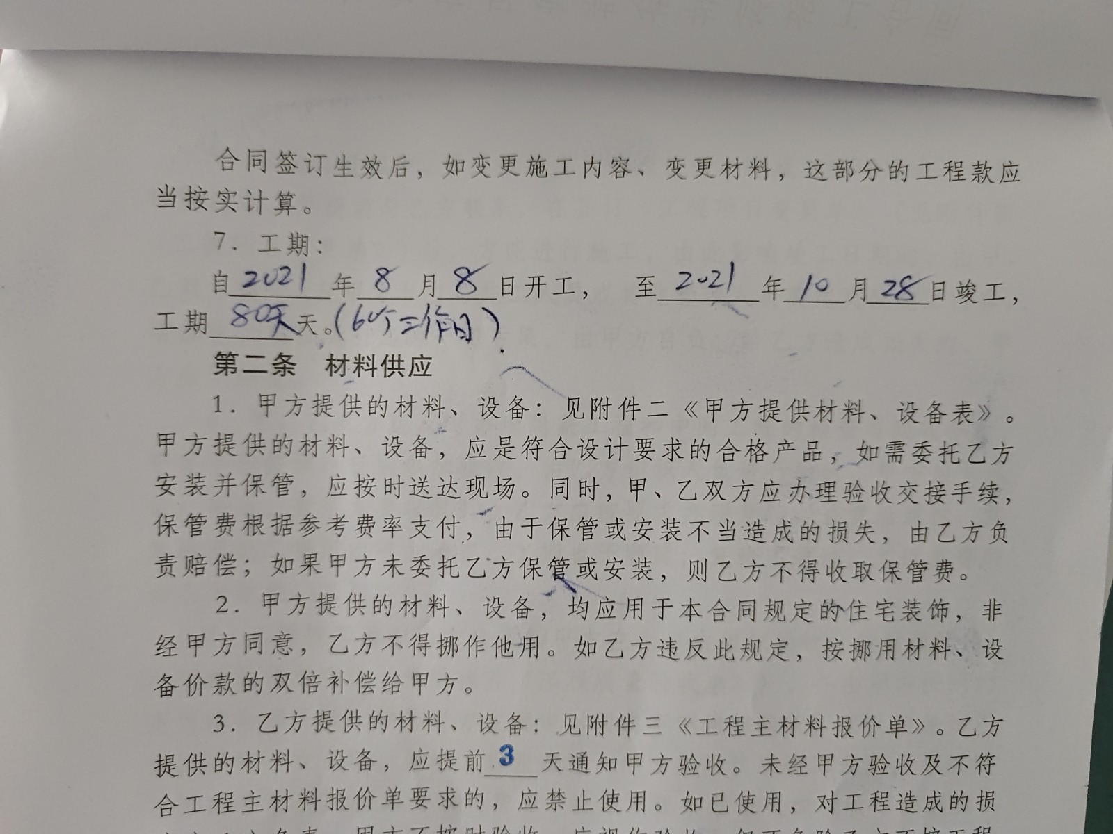 我裝修房子坐落于上海市宣中路697弄小區(qū)一室一廳68平小戶,2021年找到上海億津建筑裝飾工程有限公司,委托其公司已全包整裝方式對我房屋進行裝修,其簽訂合同自2021年8月8日正式開工至2021年10月28日竣工,工期80天