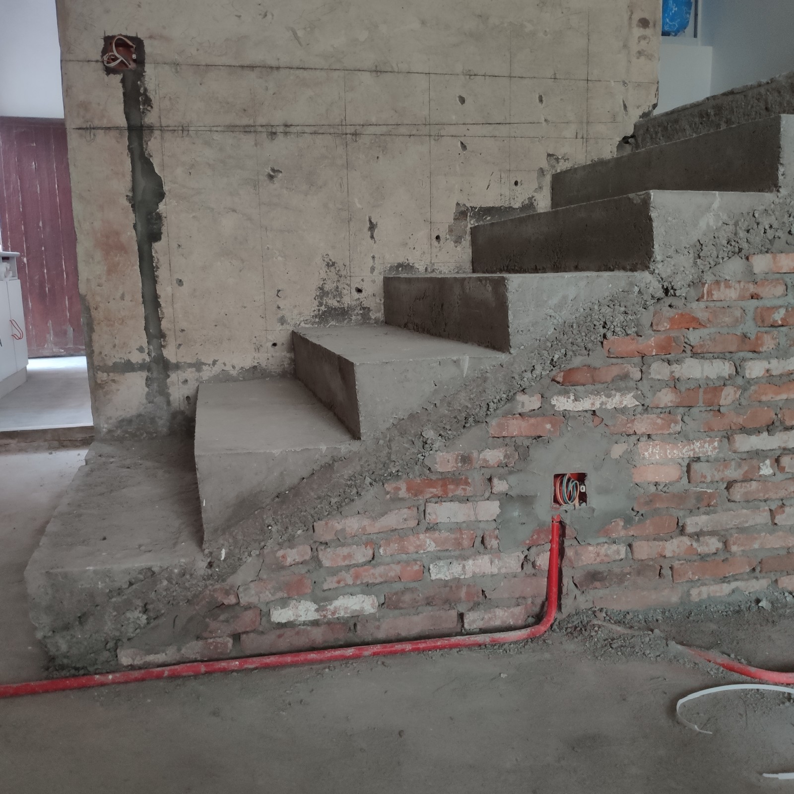 樓梯的扶手是紅磚水泥墻,砌成后大量沙子外漏,兩天就出現(xiàn)了裂縫。隊(duì)長(zhǎng)嘴硬說(shuō)是用粗沙的原因,但是又因?yàn)樾奶?,給我們樓梯刷白,想掩飾過(guò)去。