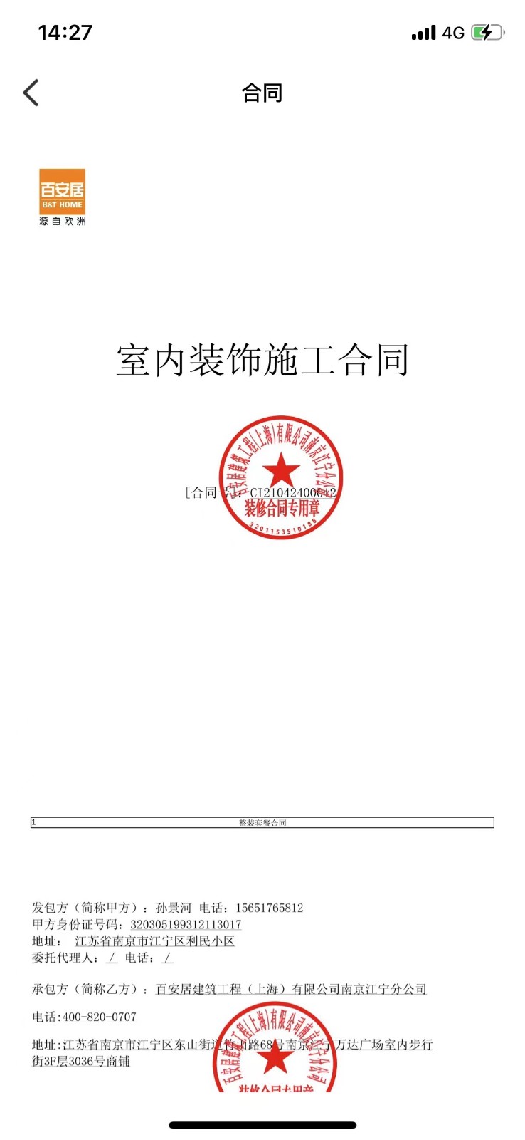 百安居建筑工程(上海)有限公司南京江寧分公司