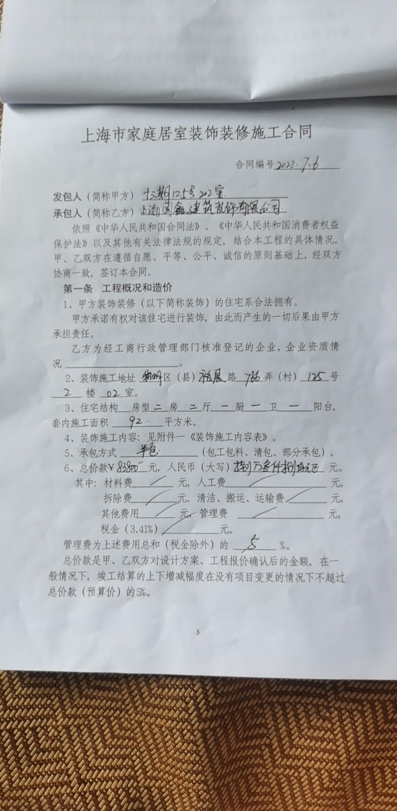 | 裝修面積 | 92m2 | 投訴人手機 | 1891808**** | 被投訴人手機 | 1366186**** |