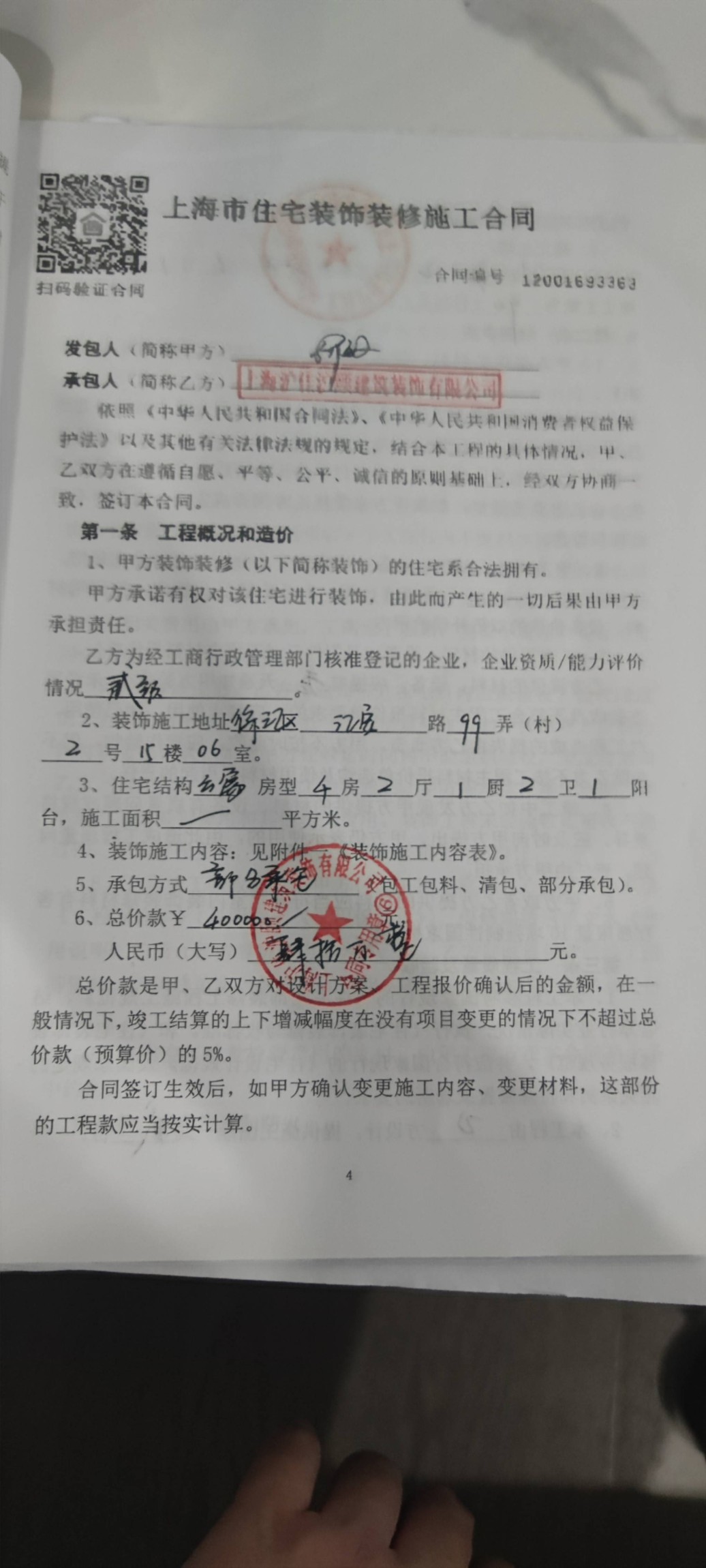 | 裝修造價 | 40萬元 | 裝修形式 | 全包 | 處理狀態(tài) | 處理中 |