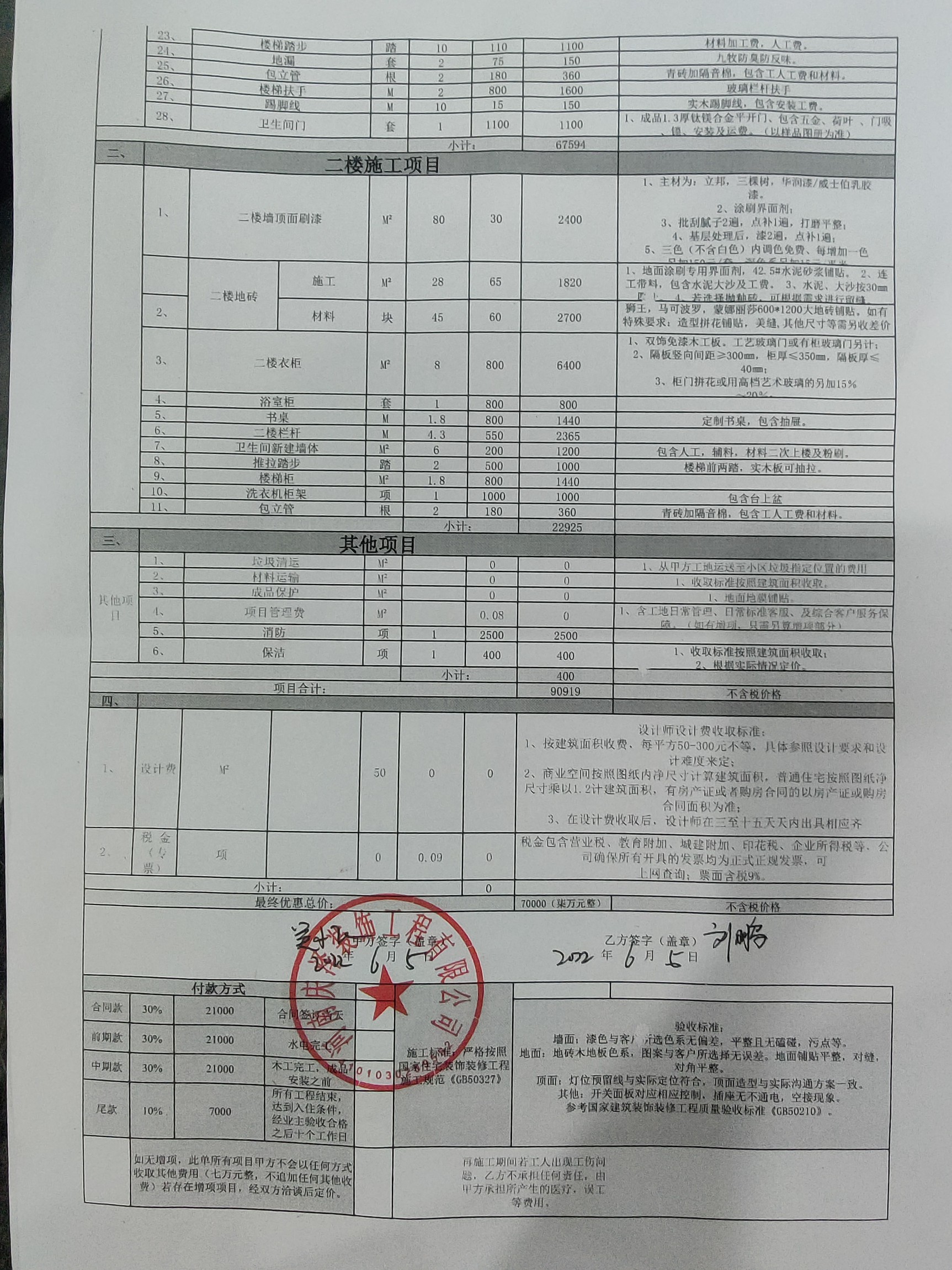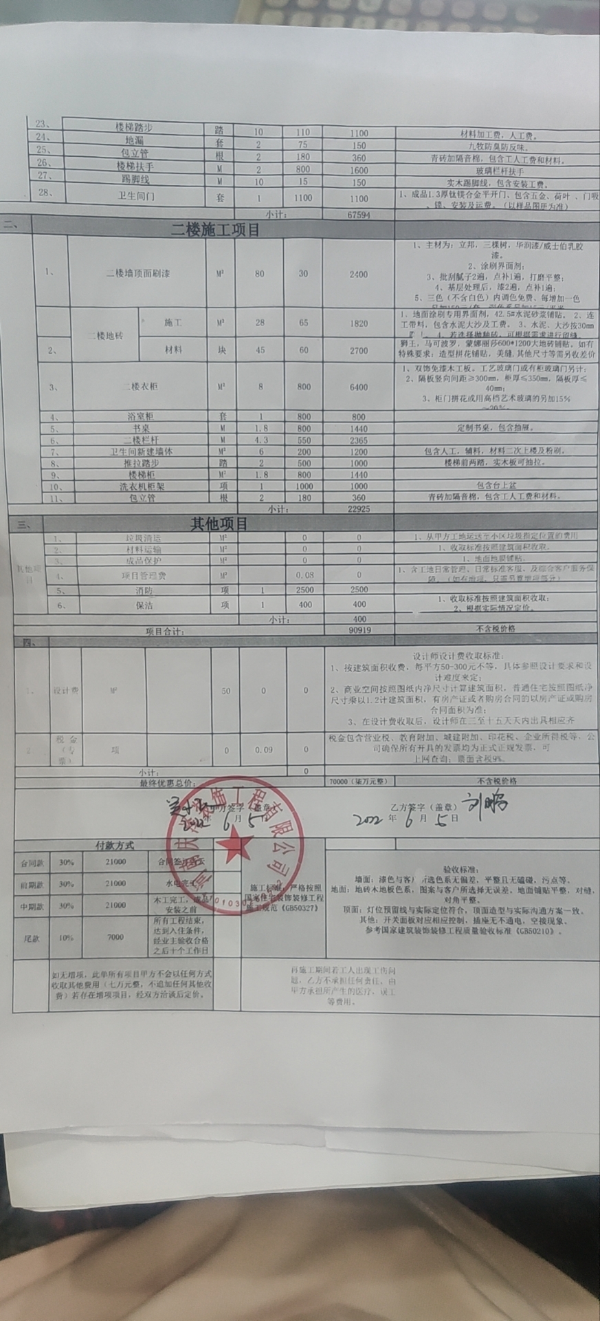 我是6月份經(jīng)人介紹找到了這家河南慶澤裝修公司,這個(gè)裝修公司就在我家樓上,這也是我選擇他家的理由,因?yàn)槁?tīng)聽(tīng)聞過(guò)裝修過(guò)程中有很多坑,我想著就是一棟樓的,裝修公司從口碑上衡量應(yīng)該也不會(huì)太過(guò)分,就選擇了他們家。我是2022年6月5日簽了合同,因?yàn)槲沂堑谝淮窝b修很多東西我不是很了解,另外他又說(shuō)我就在樓上我也跑不了之類的話,我也想著不用太上綱上線,所以合同其實(shí)并不完善,裝修標(biāo)準(zhǔn)寫的很模糊。還有一點(diǎn)是簽合同之前我問(wèn)了工期他說(shuō)40天完成,我心理預(yù)期是2個(gè)月內(nèi)都可以接受,我想著肯定不會(huì)出入太多,所以裝修時(shí)間也沒(méi)寫在合同里,這是我犯的最大錯(cuò)誤。