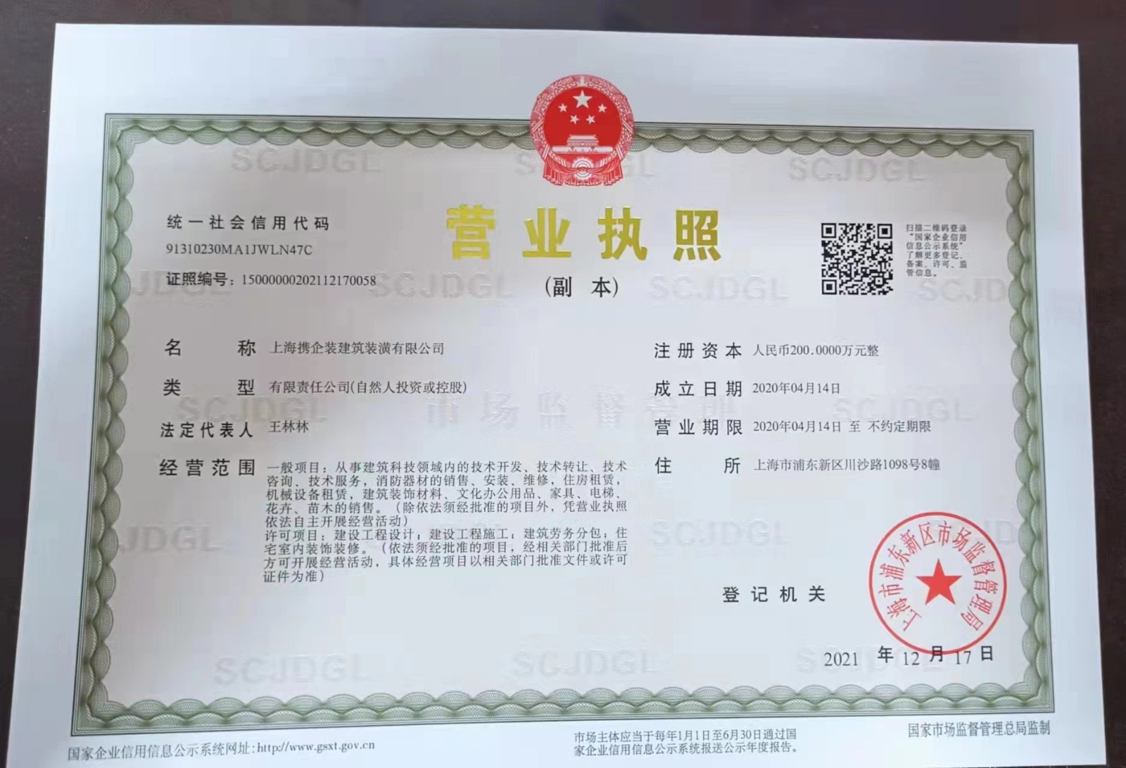 | 登記機(jī)關(guān) | 浦東新區(qū)市場監(jiān)督管理局 | 核準(zhǔn)日期 | 2020-04-14 至 無固定期限 |