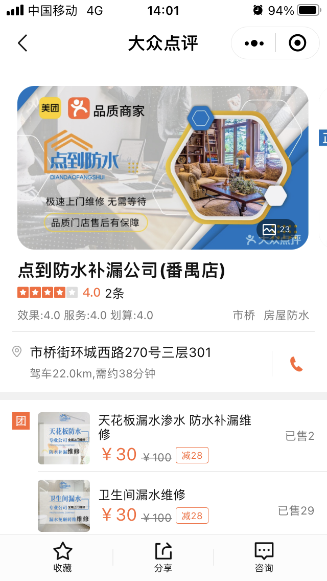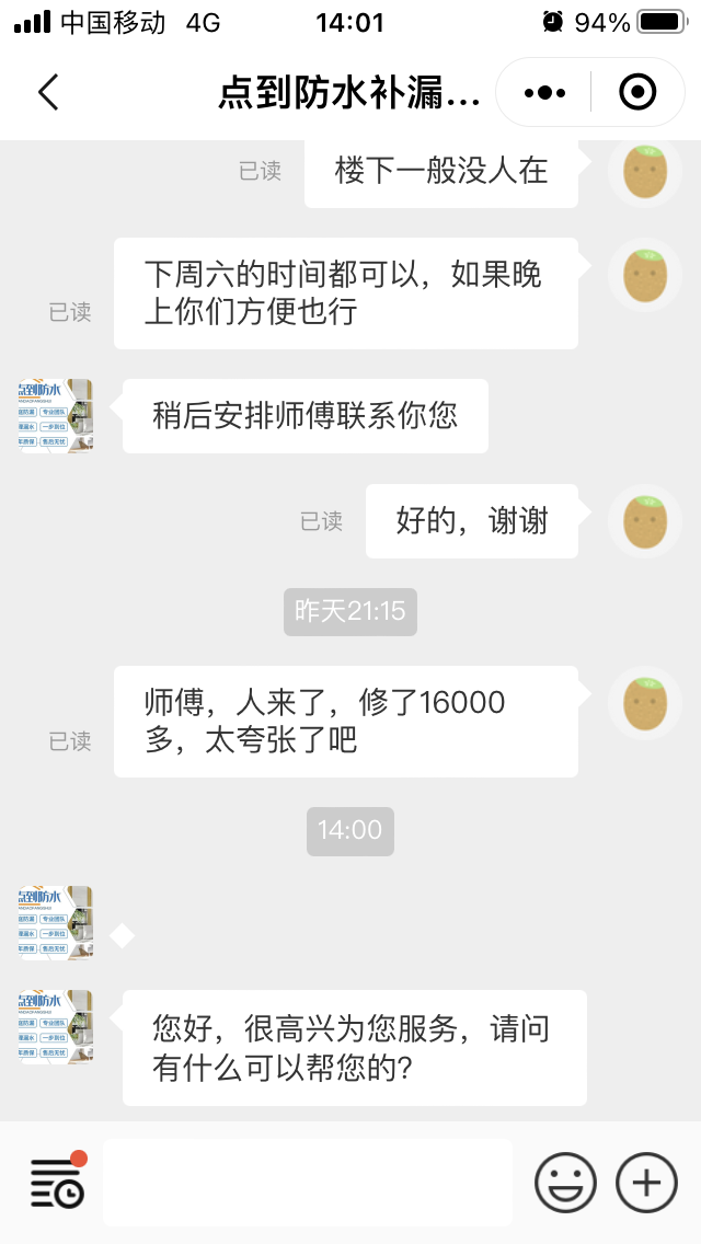 2022年7月17日,我通過大眾點評網平臺商家“點到防水補漏公司(番禺店)”預約衛(wèi)生間漏水檢測,商家未經我同意指派佛山市禪城區(qū)禹宏防水材料店人員陸兆瑩、陸飛等三人上門,檢測后告知漏水問題不嚴重,提供280元一斤的灌漿補漏服務。陸某用打孔方式在瓷磚上打了兩個孔,并將兩罐非現(xiàn)場拆封、標注為ab膠的材料罐進孔內。施工后,陸某告知共使用材料63.5斤,要求支付費用17780元,不給就在我家長住。三個大男人在我家實施恐嚇,因時間已近10點多且家中還有4歲小孩,迫于威逼我支付了11000元的費用,第二天發(fā)現(xiàn)衛(wèi)生間仍有漏水,聯(lián)系商家提供維保產品說明和維修方案,商家認為一切以其說了算,拒絕提供材料并拒絕維保。