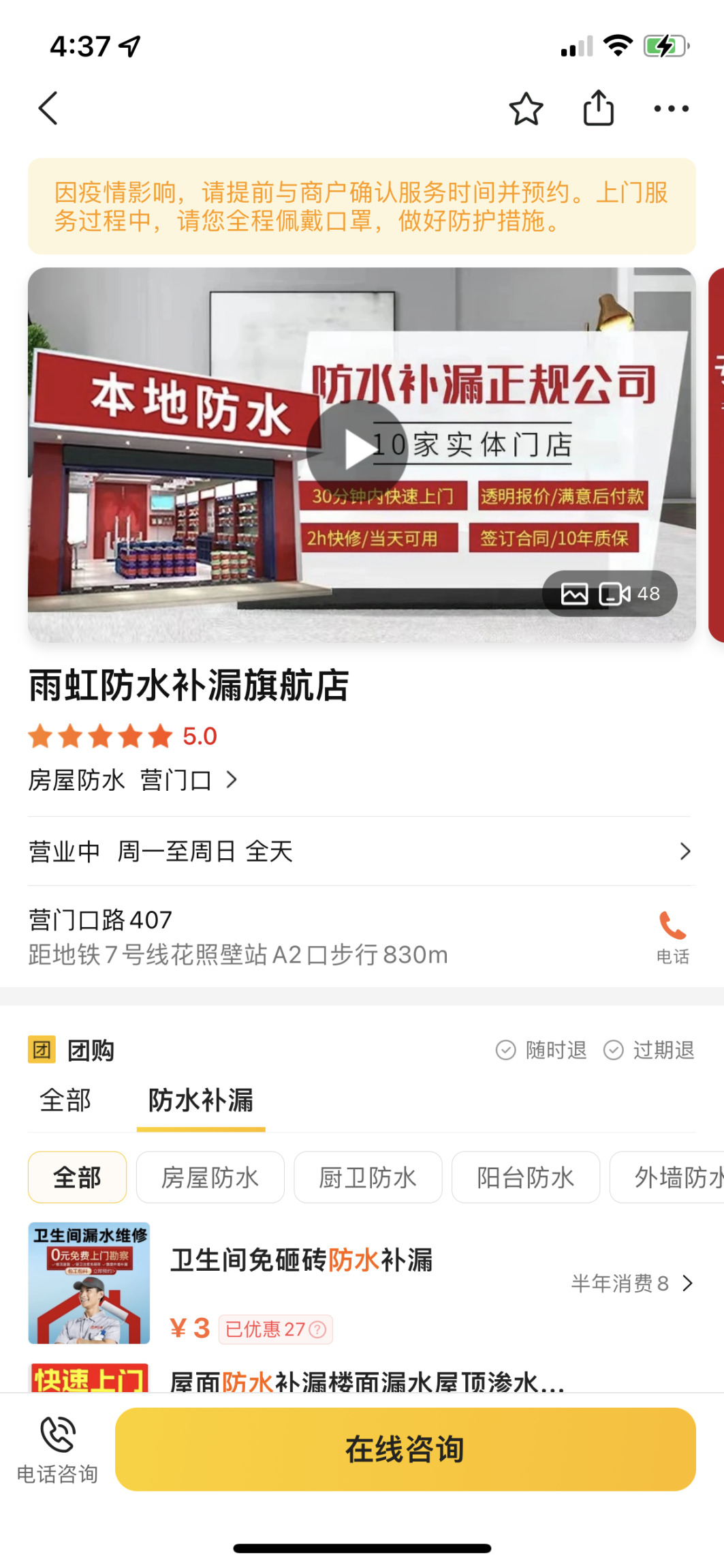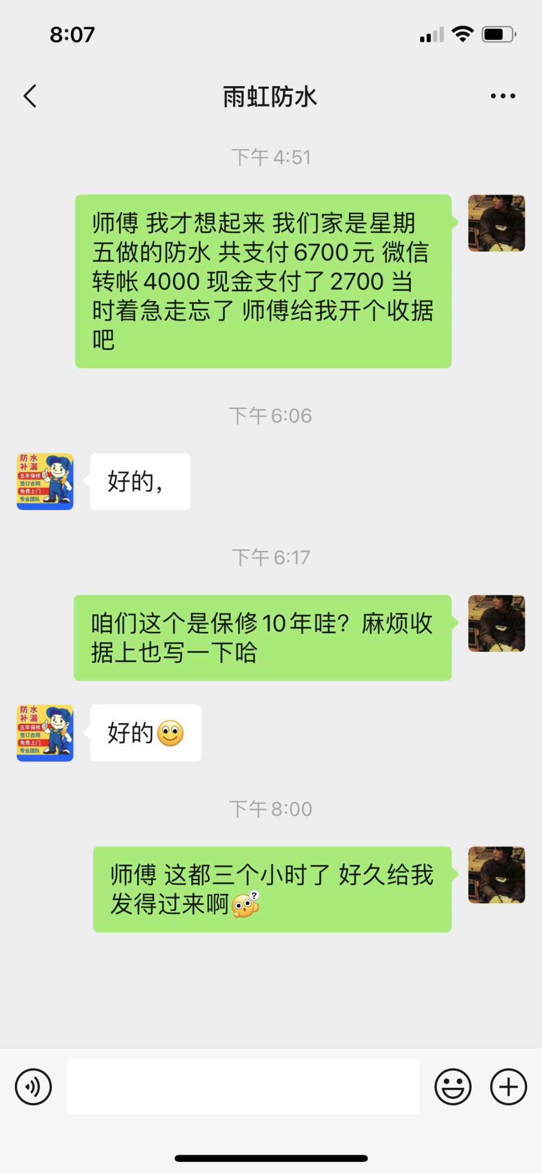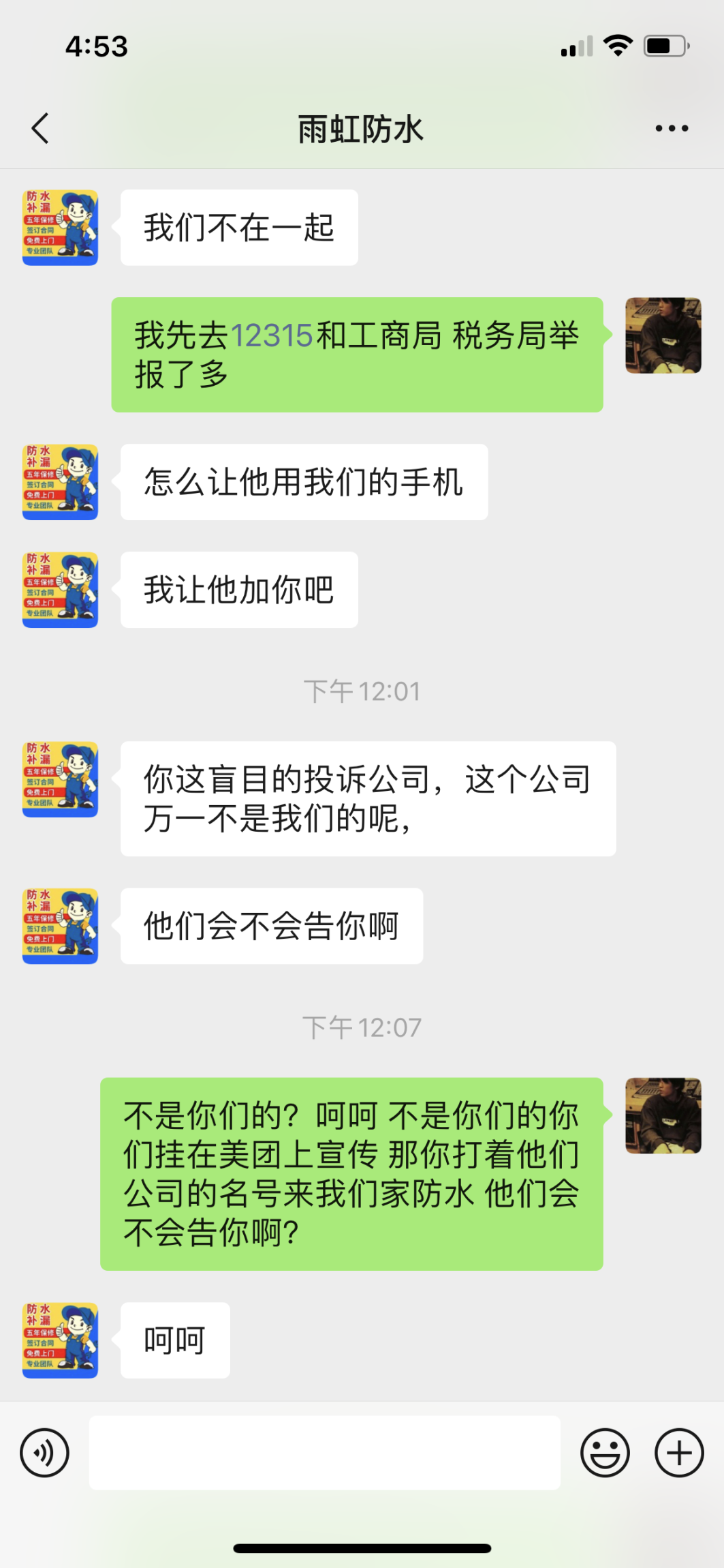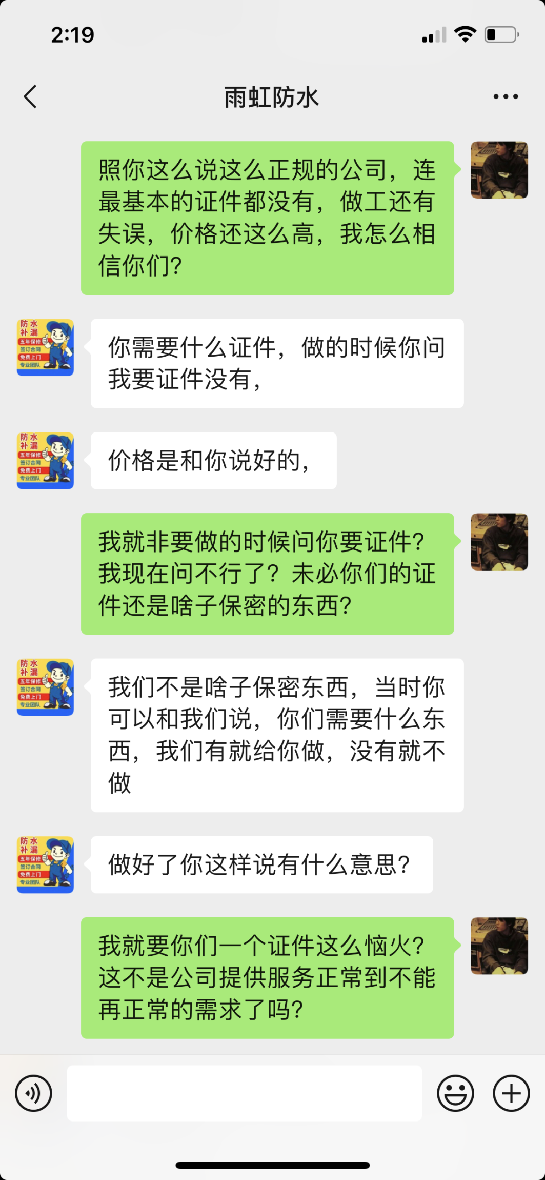 | 投訴類型 | 其它 | 投訴人 | 史** | 被投訴單位 | 成都守信雨宏防水工程有限公司 |