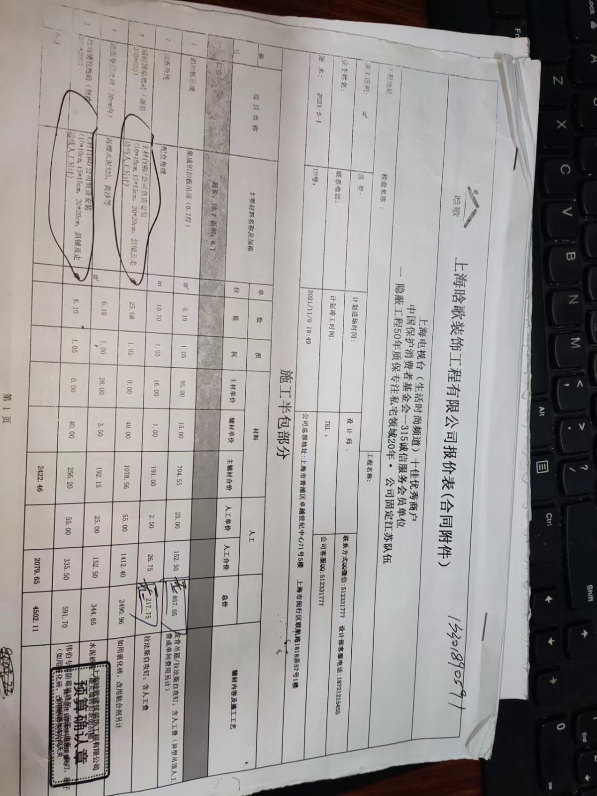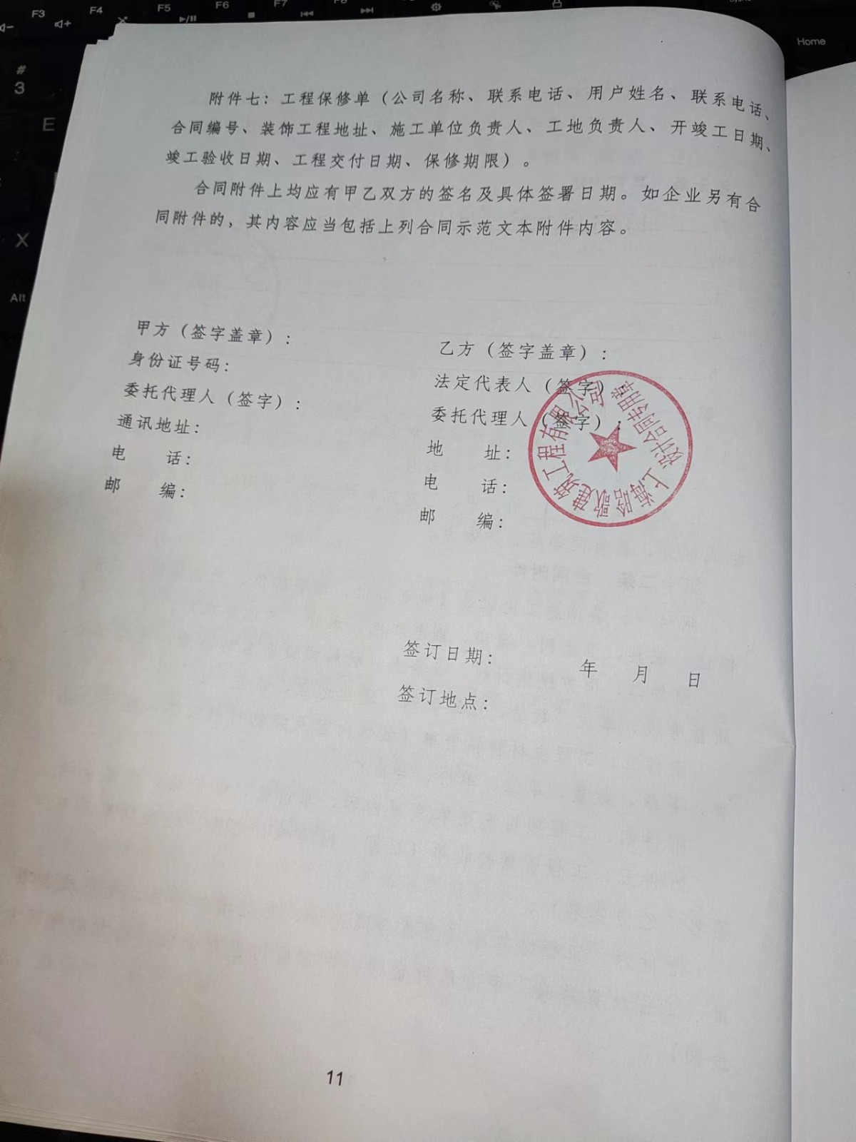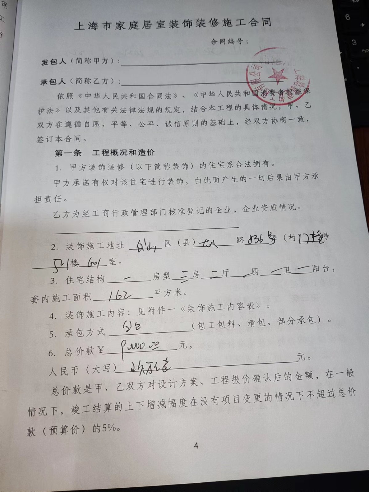 我于2021年11月9日與上海晗歌建筑裝飾工程有限公司簽訂了裝修合同,房屋所在地是上海市金山區(qū)龍山路836弄17幢501室,房屋套內(nèi)面積是114平米,合同約定2021年11月22日開工至2022年1月22日竣工。合同承包方式為全包,合同總價9萬元整。我已經(jīng)按照合同約定如期付款,剩余尾款4500元沒有支付。我是商用房簡單裝修,但現(xiàn)在存在較多問題,一直是抱著息事寧人的態(tài)度和他們協(xié)商處理趕緊交房,但一直拖延催牛陰奉陽違,我實在沒辦法了,只能在2022年8月11號在微信群里發(fā)布解除合同。我打了12345通過閔行區(qū)消保委也無果?,F(xiàn)在我都有視頻取證,包括打了12345后他們在2022年8月16號拍人過來協(xié)調(diào),也全程錄音錄像,但是視頻都太大了我現(xiàn)在沒法上傳。這家公司我事后發(fā)現(xiàn)他們合同上也沒留下電話號碼,所有事情都是在微信群中聯(lián)系,問他們要過幾次,他們也不給,我只有他們微信號和客戶電話18721711921.