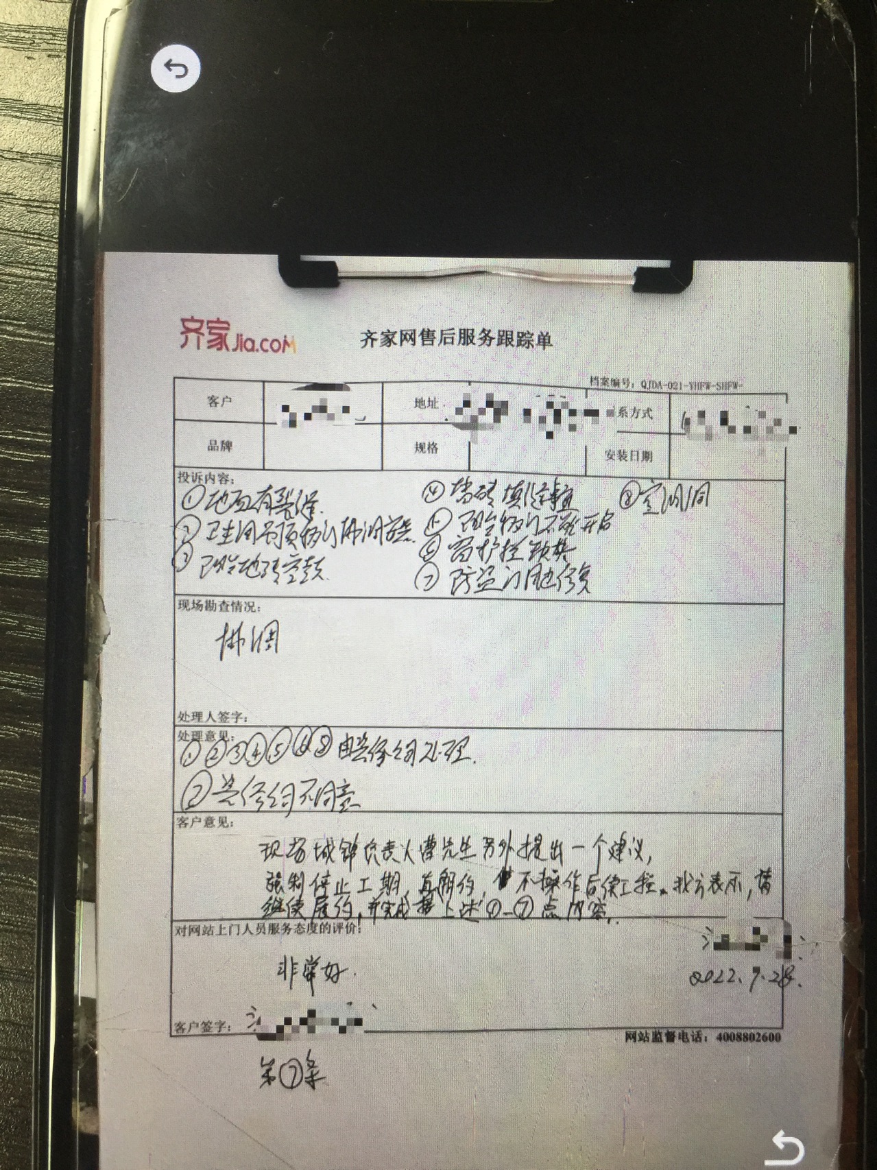 最后,也希望齊家平臺(tái)能對(duì)提供的裝修公司起到約束管理,我將合同款8成打給齊家,齊家到目前為止,并未收到任何一方解約通知,擅自將我方視為同意解約,不進(jìn)行有效處理.希望協(xié)會(huì)老師能夠幫助我們妥善處理,將剩余款項(xiàng)盡早退賠我方.