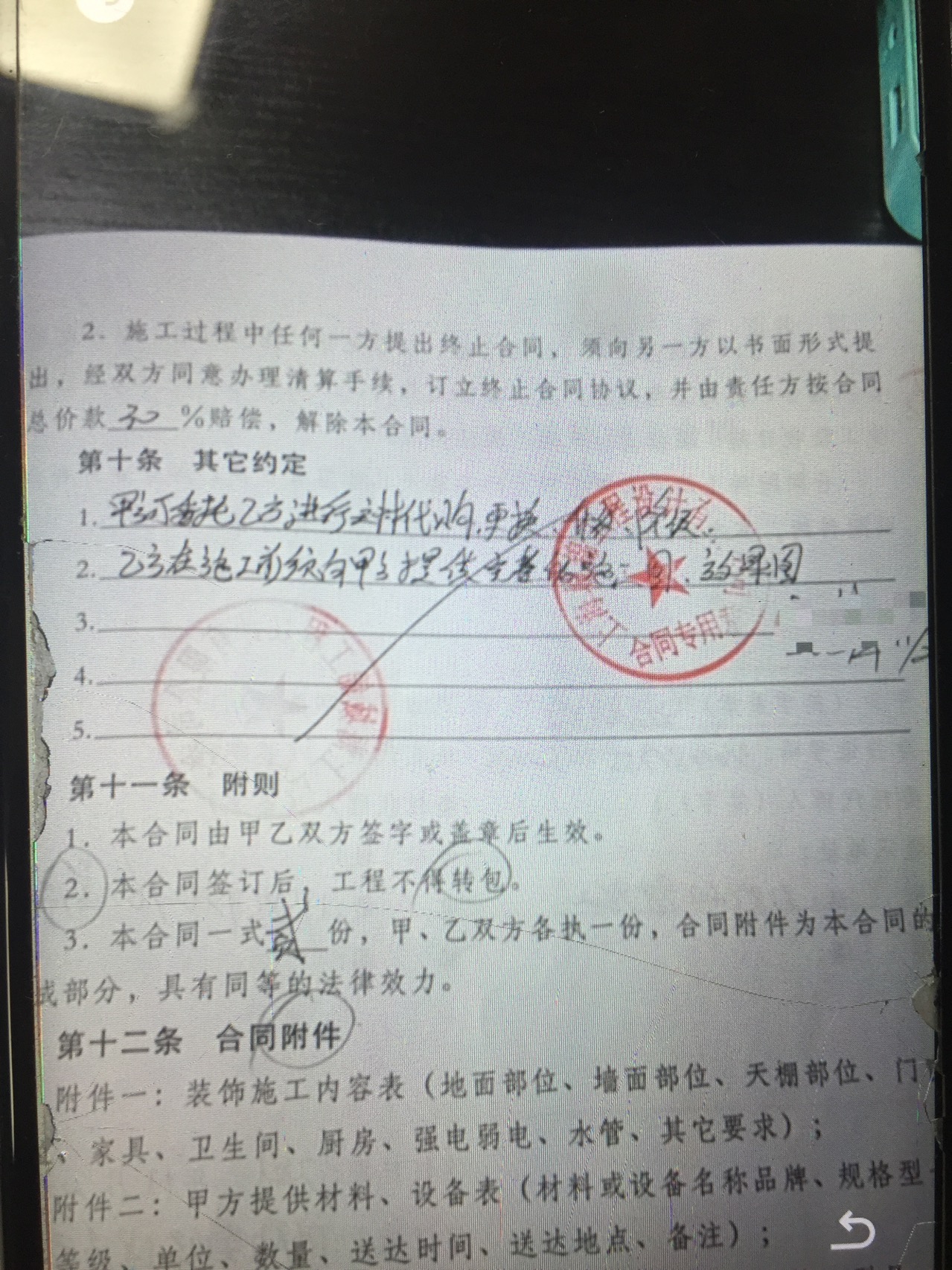我是通過(guò)齊家網(wǎng)找到城錦飾家,去年11月底約定3月底交房,合同金額6萬(wàn)6,部分全包。12月開(kāi)工,拆舊沒(méi)幾天工長(zhǎng)提出3萬(wàn)增項(xiàng),才能繼續(xù)開(kāi)工,現(xiàn)場(chǎng)直接停工.1月通過(guò)媒體渠道,協(xié)調(diào)下來(lái)退了近2萬(wàn)主材,服務(wù)質(zhì)量升級(jí),閉口合同,違約金50元上調(diào)到200元,4月底保質(zhì)保量交付,由裝修公司提供甲醛治理。春節(jié)后復(fù)工,又發(fā)現(xiàn)多處問(wèn)題。