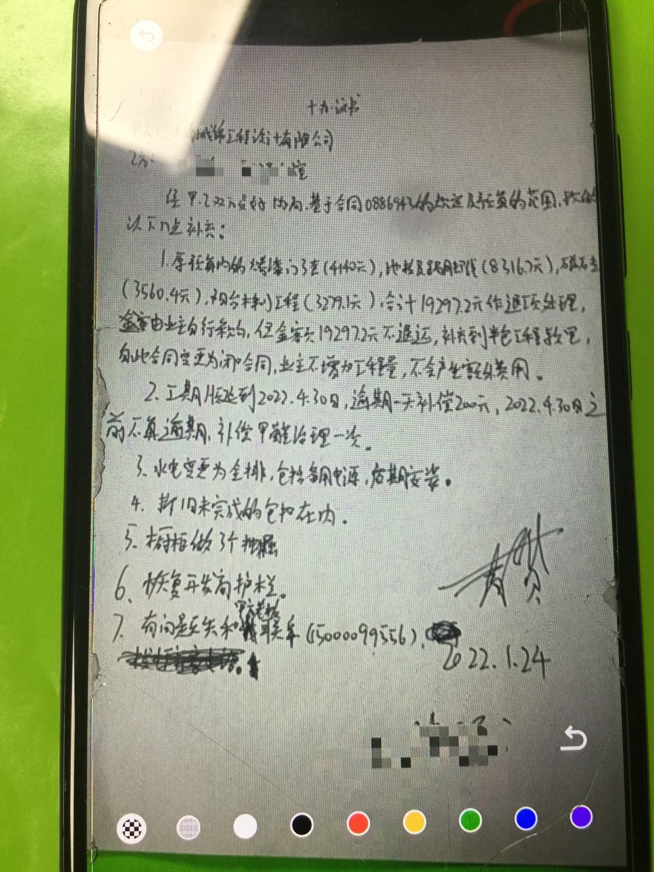 現(xiàn)狀:7月底,在齊家監(jiān)理現(xiàn)場(chǎng)確認(rèn)下,裝修公司老板承認(rèn)并愿意整改存在的施工問(wèn)題,但是對(duì)于下面幾項(xiàng)問(wèn)題,不愿意執(zhí)行:
