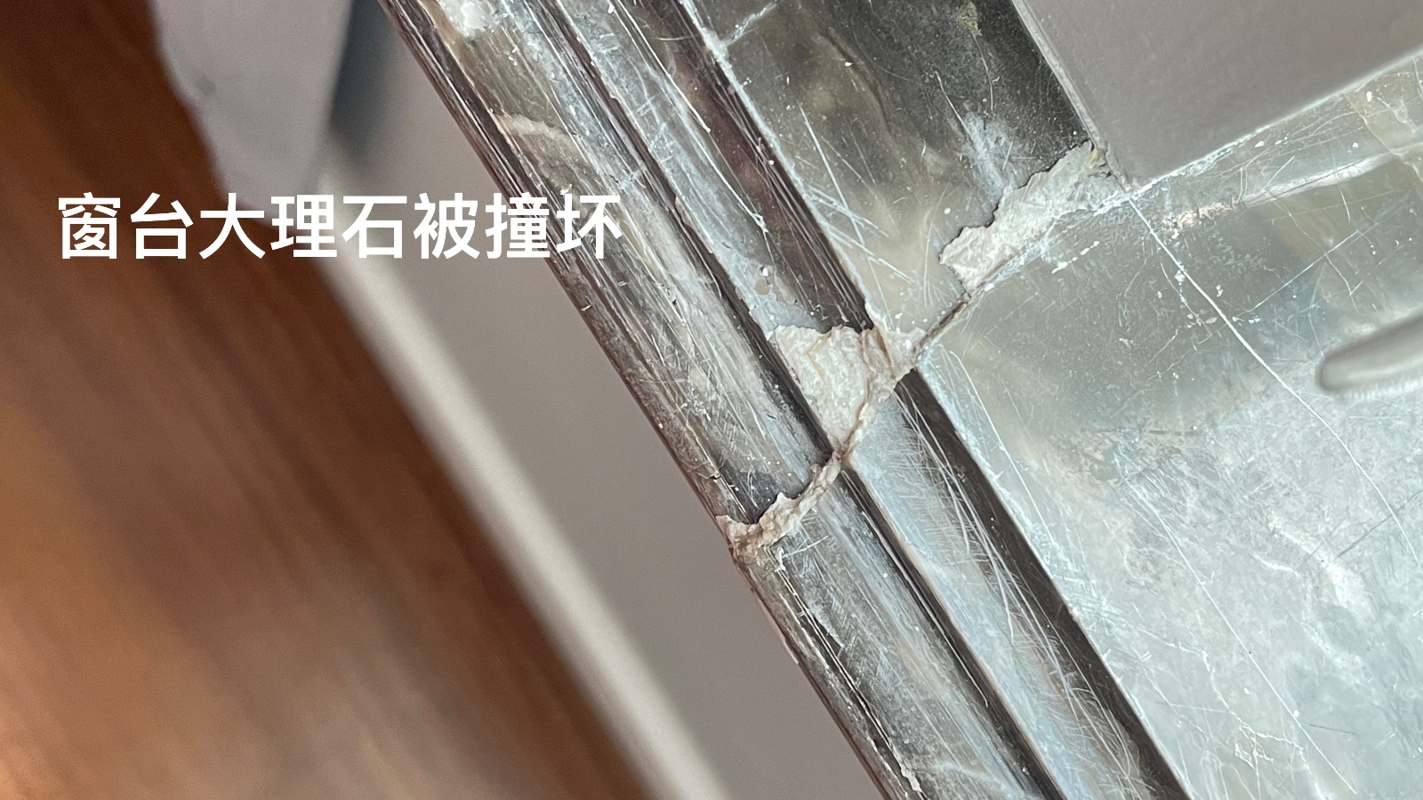 4.特別氣憤的是主臥柚木地板和窗臺大理石都被人為撬、撞壞然后再修補(三樣不換不要動的都被人為破壞!)