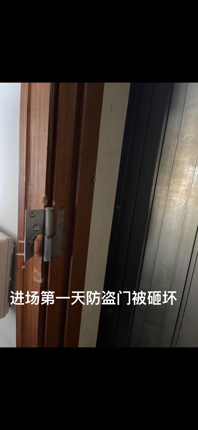 2.進(jìn)場特和施工隊長交代二扇門都不換、地板不換、窗臺大理石不換!當(dāng)場寫在墻上提示(有照片)結(jié)果第二天早上等我們趕到防盜門已被砸下~后續(xù)雖有裝上但已面目全非!不如原裝,我們至今自己買了顏料等還在修補~~