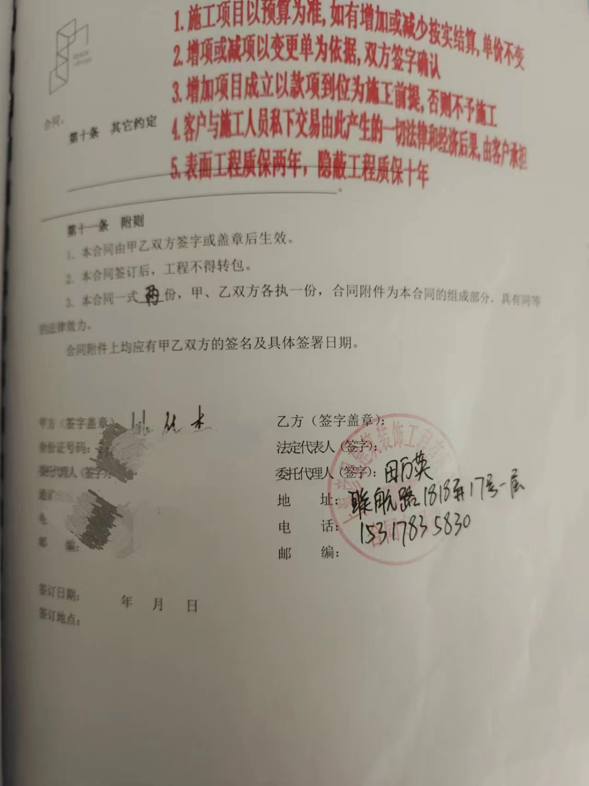 1.安裝毛巾架時(shí)打穿墻內(nèi)預(yù)埋的水管 2.熱水器收費(fèi)安裝,卻因?yàn)椴粚I(yè)導(dǎo)致天然氣泄漏 3.下水管有安全隱患整個(gè)過程中沒有告知業(yè)主也沒有填堵下水管的洞導(dǎo)致家中鼠患 4.嚴(yán)重拖延工期,2021年7月至今業(yè)主還未入住,很多問題都沒有解決,裝修公司人員以消極的態(tài)度對(duì)待,最終驗(yàn)收一直沒有完成 5.陽(yáng)臺(tái)有滲水 6.未按業(yè)主裝修意愿私自改動(dòng)墻面顏色 7.兒童房窗戶未按照約定使用鋼化玻璃