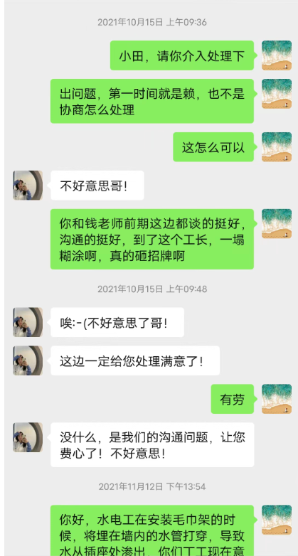 3.剩余裝修問題,要及時(shí)上門溝通并解決而不是在微信群里開辯論會(huì)推卸責(zé)任,或者直接沉默,避而不談