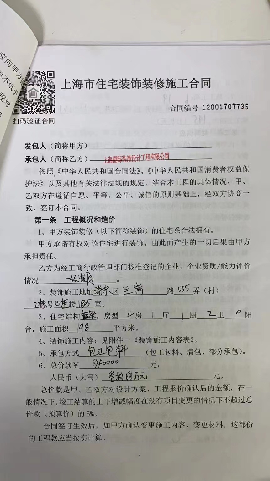 本人是上海市浦東新區(qū)蘭嵩路555(弄)號(hào) 2棟e座1805室的業(yè)主,今日致信旨在反映上海潮邸裝潢設(shè)計(jì)工程有限公司在與本人簽訂《上海市住宅裝飾裝修施工合同》,合同約定潮邸公司包工包料合同價(jià)為34萬(wàn),合同簽訂后潮邸公司并沒有按照合同內(nèi)容與雙方合意內(nèi)容提供質(zhì)量合格的、內(nèi)容完整的裝修裝飾服務(wù),僅僅做了基礎(chǔ)施工,其他材料大部分是本人購(gòu)買的,本人多次找潮邸公司溝通,然而潮邸公司不予變更合同,僅僅在原來全部打包價(jià)中扣除少量?jī)r(jià)款。本人為保證工程如期完成,現(xiàn)只能準(zhǔn)備另請(qǐng)其他裝修公司裝修,付出了額外的許多人力、物力、財(cái)力。潮邸公司的行為不僅違反合同約定,應(yīng)當(dāng)承擔(dān)違約責(zé)任;也違反國(guó)家法律規(guī)定,嚴(yán)重侵犯本人作為消費(fèi)者公平交易的權(quán)利。