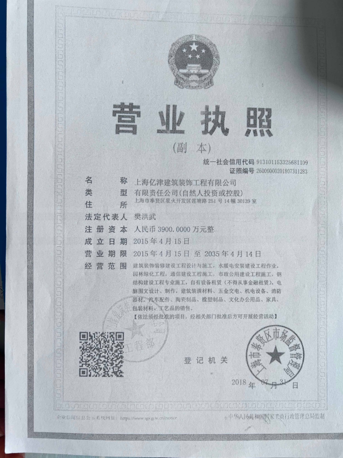 | 登記機(jī)關(guān) | 奉賢區(qū)市場監(jiān)管局 | 核準(zhǔn)日期 | 2018-07-31 |