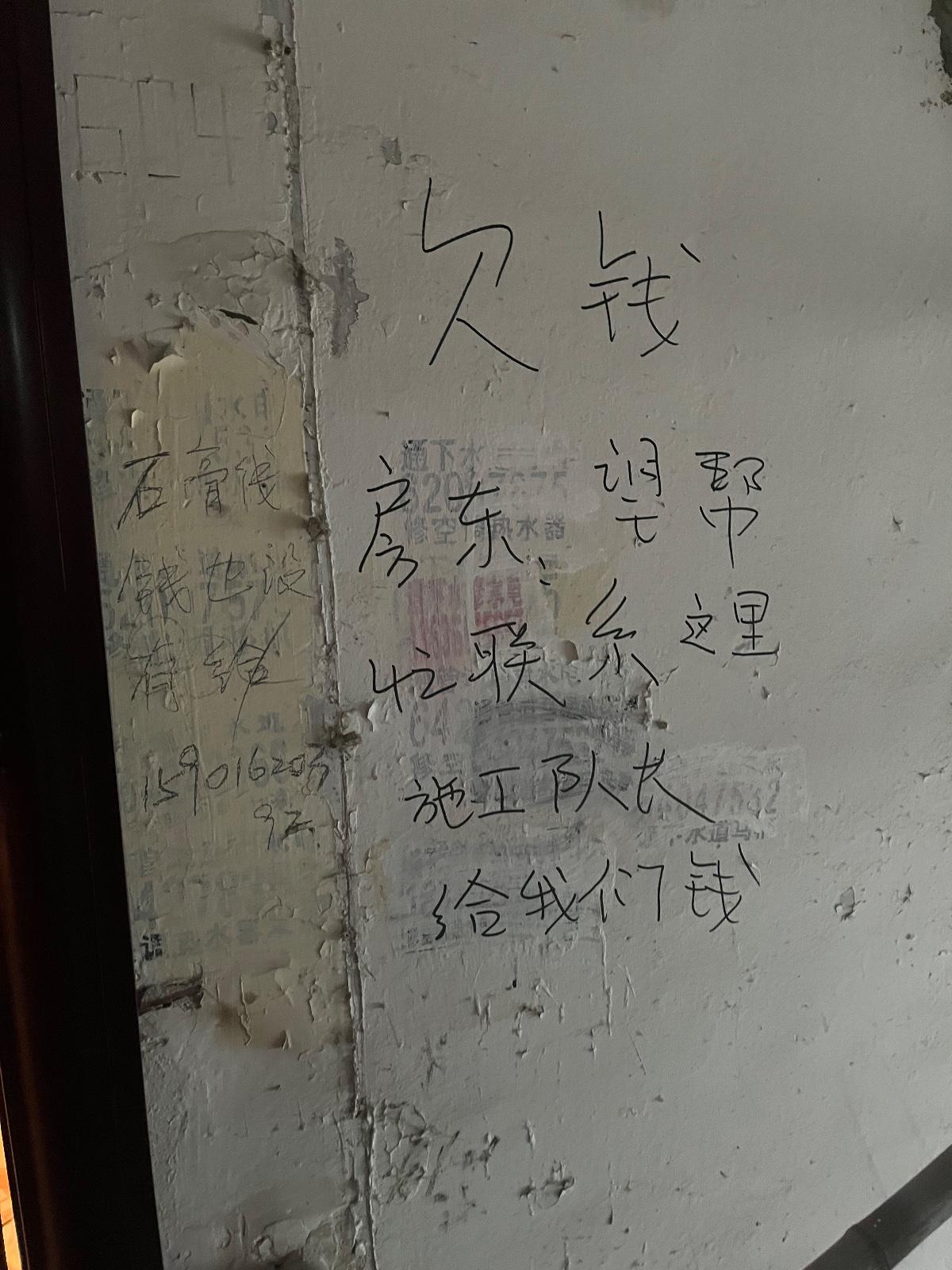 8、還有更加過分的,拖欠工人工資,工人跑到我家去要錢,在我墻上寫字要挾,都是這個公司不給工人工資,工人說他們也沒辦法,說他們老板沒一一句真話
