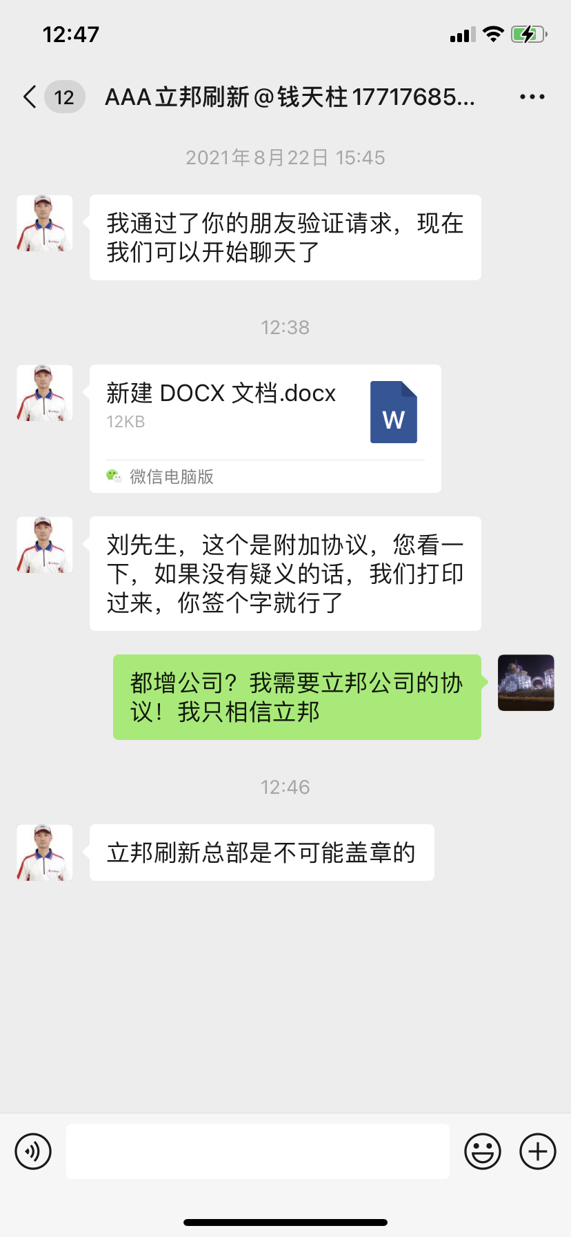 2021年8月17日購買的立邦刷新服務(wù)!上門無故要求加錢被我拒絕加錢后一年多了不給施工!還要求我簽署第三方公司免責(zé)協(xié)議!導(dǎo)致房子無法住人!打他們公司電話幾十次沒人理會!