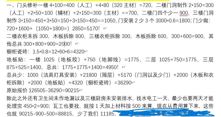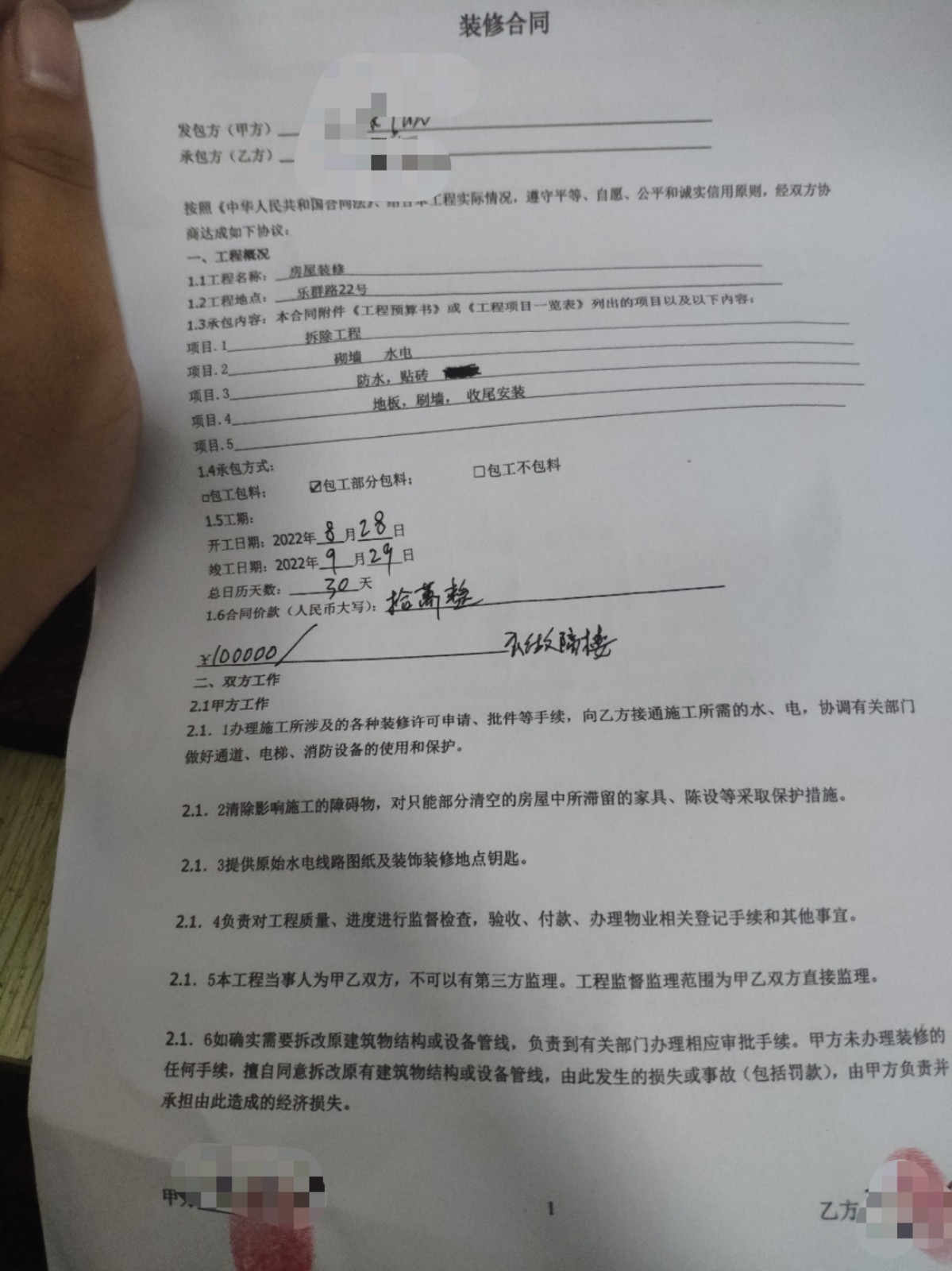 首先是合同后期發(fā)現(xiàn)沒(méi)有可以用來(lái)維護(hù)我們甲方權(quán)益的內(nèi)容,第二前期給了一份材料清單沒(méi)有給圖紙,后期只是討論敲定后沒(méi)給第二份材料清單圖紙沒(méi)給,后期一些工程不給做,硬說(shuō)之前沒(méi)說(shuō),我們一期不同意的地方說(shuō)讓我們付完一期錢的給做,但是一直到第三期也沒(méi)做讓我們加錢,我們加錢后才給做,而且我們提的很多意見(jiàn)只是同意但不給實(shí)現(xiàn),后面更是說(shuō)是把錢結(jié)清才給收尾,但是工程遠(yuǎn)遠(yuǎn)不到收尾的程度,到處都是坑坑洼洼水管亂走,一些材料報(bào)價(jià)是用好的但是實(shí)際裝的都是最差的材料,而且找人當(dāng)面聊也找不到,說(shuō)什么人都不來(lái),我們說(shuō)去找他,他也不說(shuō)地址,一直讓我們網(wǎng)上聊,可是聊兩句他就會(huì)吵我們,線上完全沒(méi)有辦法進(jìn)行有效溝通,本來(lái)想著包出去圖個(gè)省事,最終錢花了事也沒(méi)省,最后還得我們自己去想辦法去填補(bǔ)漏洞。