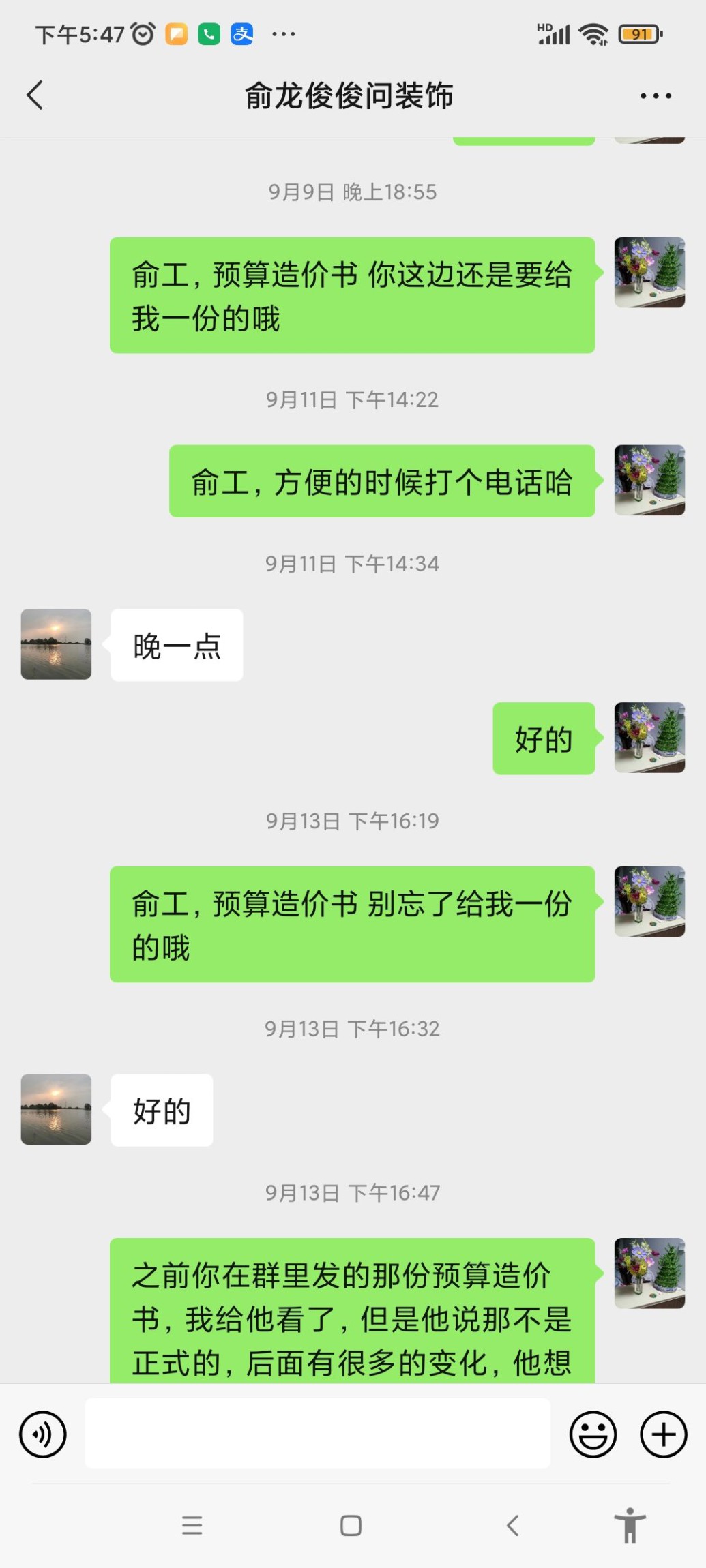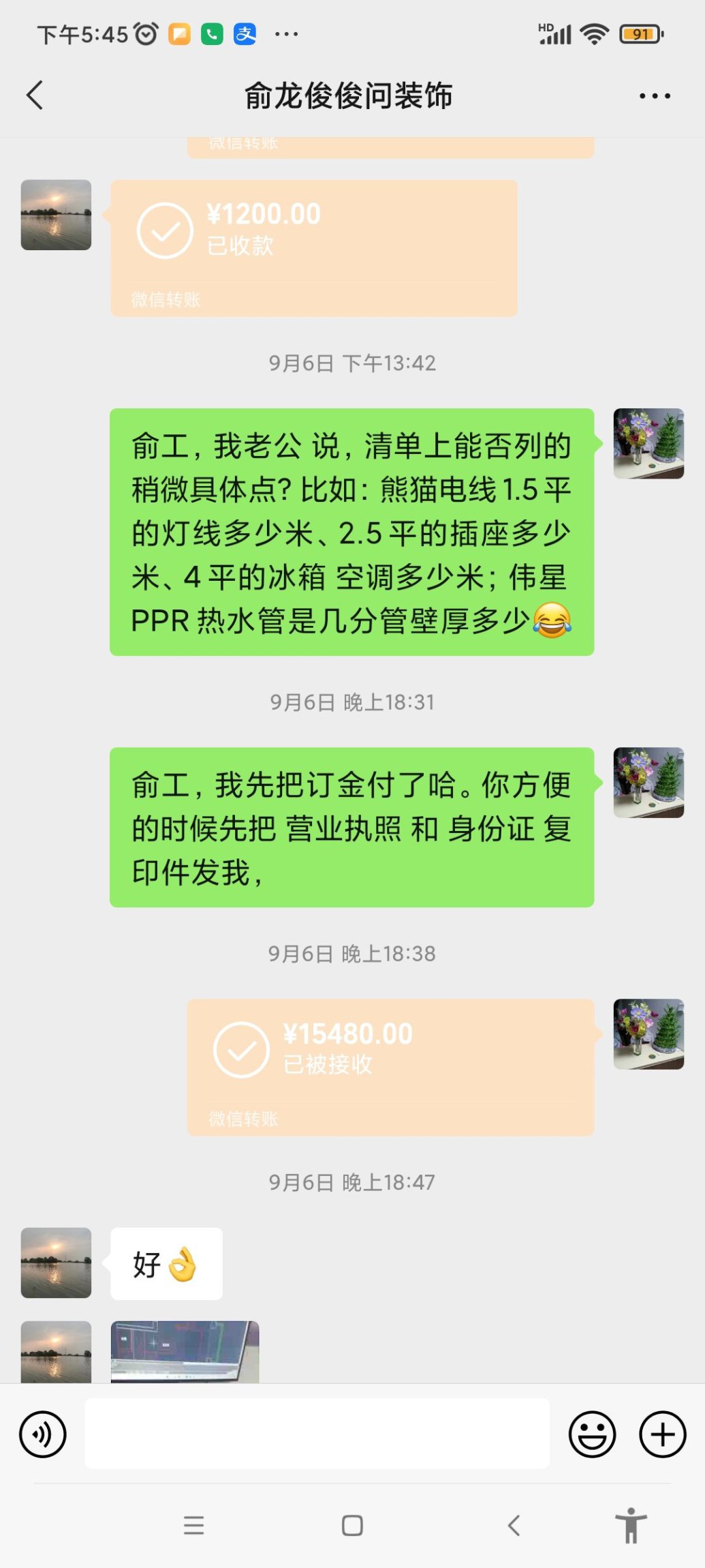 裝修合同尚未正式訂立時,2022年9月5日俞龍俊用低價、隨時可退全額訂金忽悠我先支付訂金16680元,支付訂金后,未再提供任何方案和報價明細、也不提供相關(guān)資質(zhì)及收據(jù),多次催討無果。