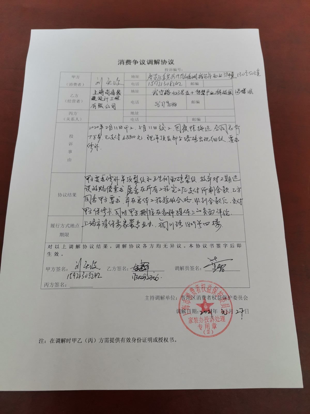 | 投訴類型 | 施工質(zhì)量 | 投訴人 | 劉** | 被投訴單位 | 上海尚高裝潢設(shè)計工程有限公司 |