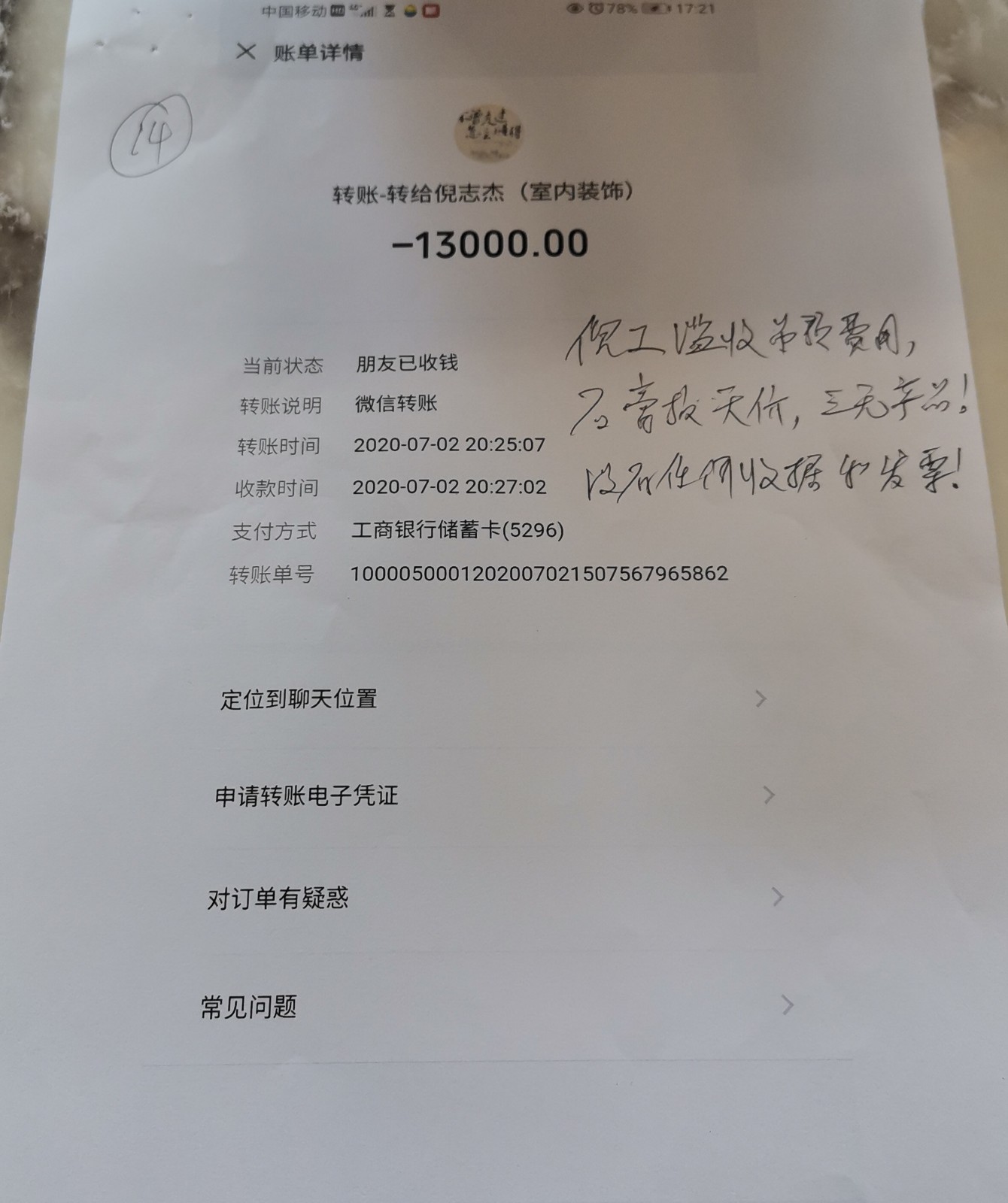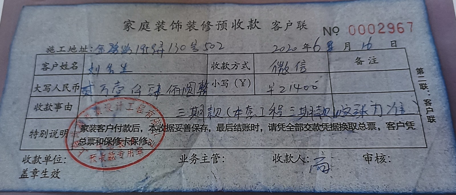 | 裝修面積 | 123m2 | 投訴人手機 | 1592130**** | 被投訴人手機 | 1306171**** |