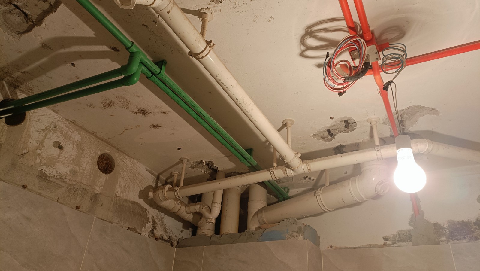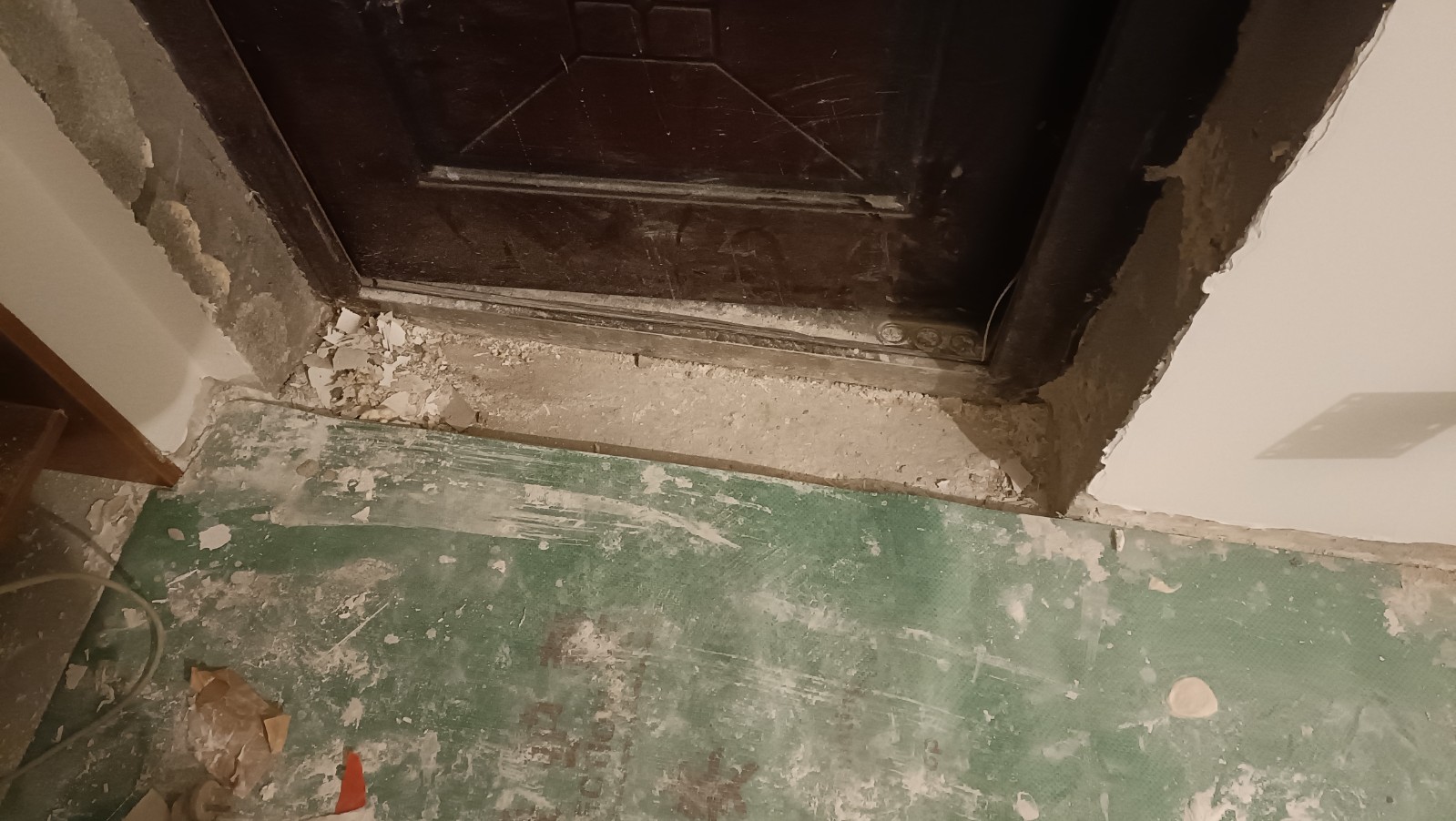 3、施工中順序顛倒,導(dǎo)致一些后續(xù)不可逆的問題。在墻面未鏟除和鋪設(shè)地板的情況下就現(xiàn)場打衣柜,導(dǎo)致木柜只能固定在未經(jīng)處理的墻面和水泥地面上,無法在正常的木地板上方。由于樓上水管堵塞漏水,墻面發(fā)霉,木柜就直接固定在發(fā)霉的墻面上,木地板今后鋪設(shè)只能避開木柜,故存在不必要的踢腳線收邊處理,既不美觀也損失損耗業(yè)主成本。經(jīng)與現(xiàn)場施工人員溝通后,施工人員拒絕返工,說只能按照退回墻面鏟除的費(fèi)用進(jìn)行處理。
