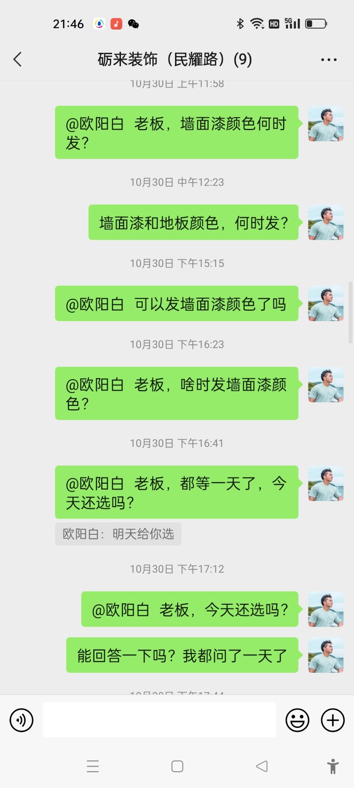 5、裝修工時(shí)嚴(yán)重超期。按照合同,應(yīng)該在2022年9月1日完成施工,拖延至視頻拍攝時(shí)間,2022年11月6日都尚未完工,只完成水電和櫥柜框架(門板沒有安裝)。地板、櫥柜門板、防盜門、墻面漆等都均未施工,家具也沒有送達(dá)。施工人員目前為止,一共只施工了大約兩周左右的時(shí)間,其余時(shí)間均沒有人員進(jìn)行施工,造成我在裝修期間的租房費(fèi)用損失很大。