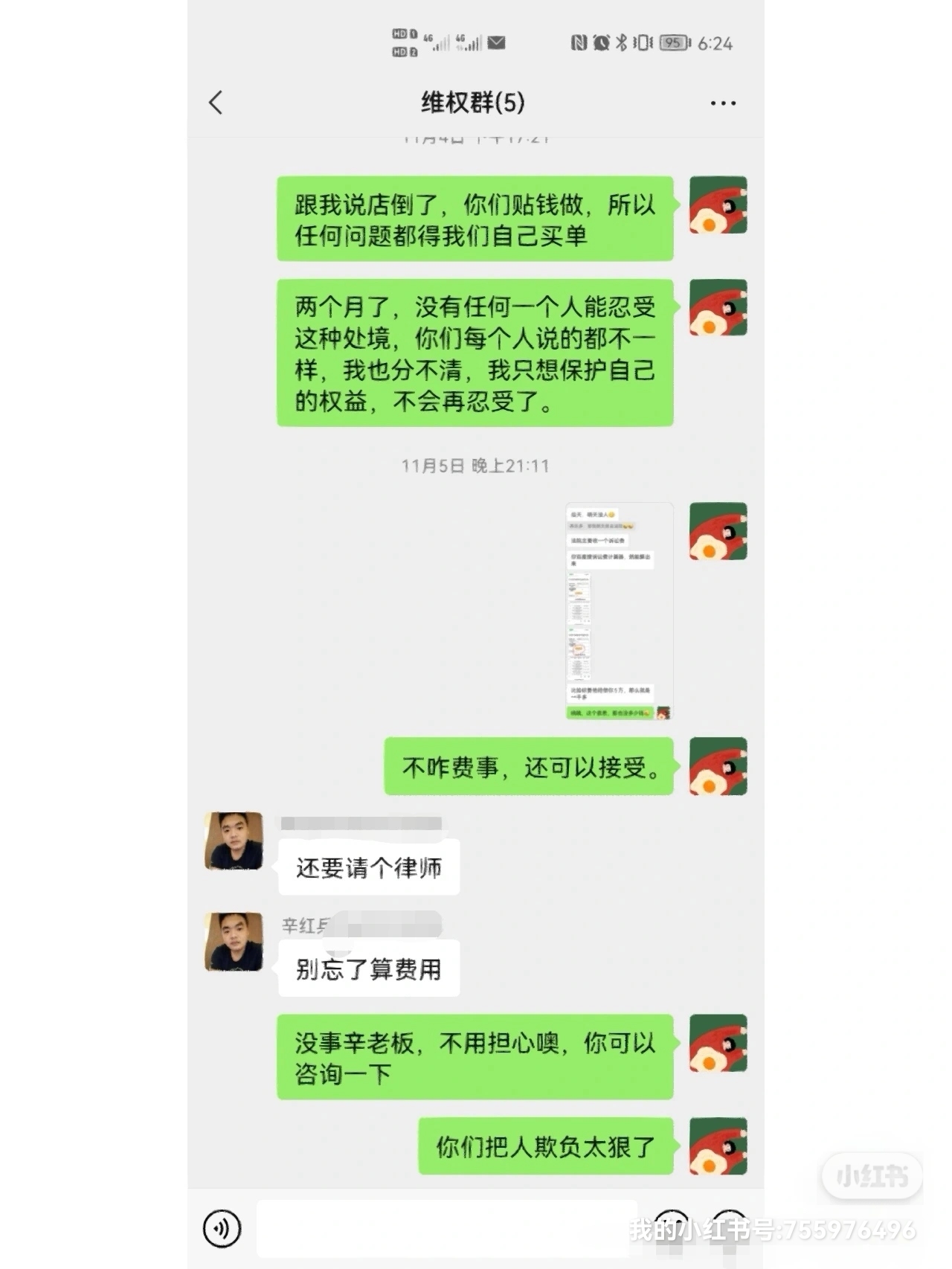 圖三記錄了我說(shuō)我要起訴,老板無(wú)所畏懼的態(tài)度。