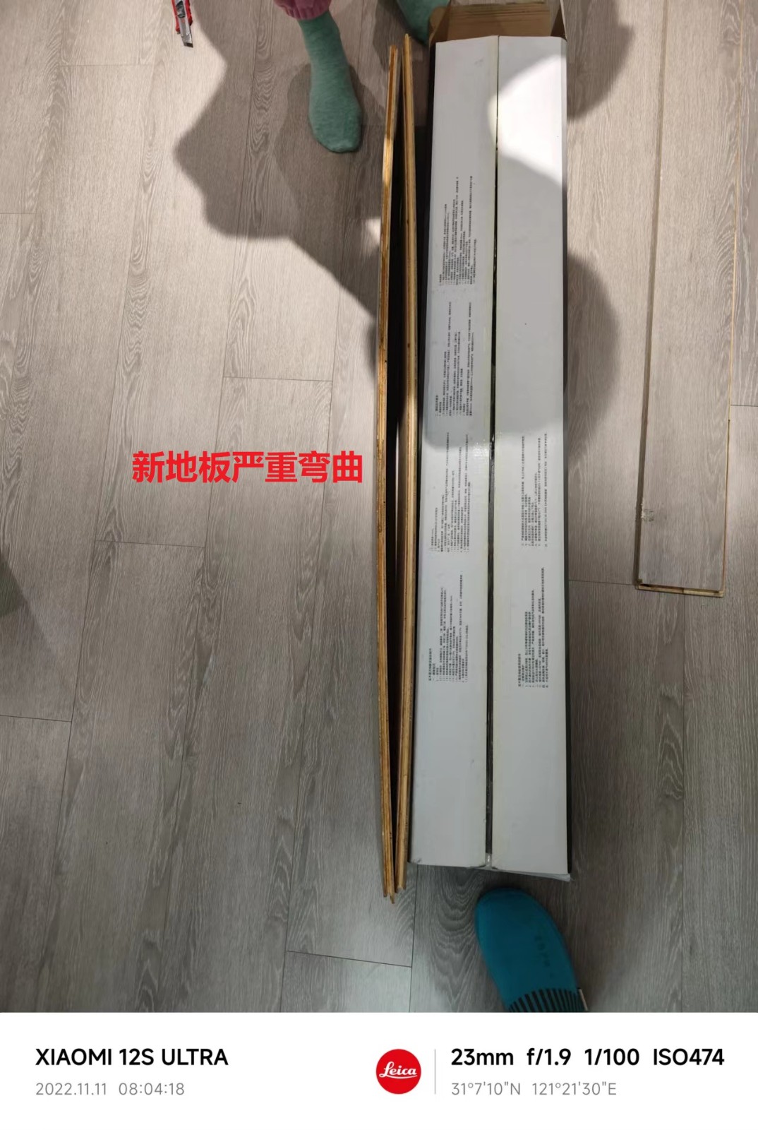 全屋裝修找了上海極家裝修公司,其中使用了與該裝修公司合作的康輝品牌的新三層木質(zhì)地板,入住9個(gè)月即發(fā)生整屋90%以上地板以圓形、條狀以及波浪形起包、起鼓的情況。經(jīng)聯(lián)系后,商家上門(mén)查看后,對(duì)于以上描述的情況確認(rèn)無(wú)異,承諾將上門(mén)進(jìn)行售后維修并賠償業(yè)主之前套餐升級(jí)該地板的額外多支付的3000元。11月11日,康輝售后工人上門(mén)維修,將原來(lái)地板部分拆除后,才發(fā)現(xiàn)帶來(lái)調(diào)換的地板顏色不對(duì),且嚴(yán)重彎曲變形,品質(zhì)存在嚴(yán)重問(wèn)題,具體可見(jiàn)照片、視頻。目前調(diào)換地板事宜就此擱置,業(yè)主反復(fù)溝通極家公司,每次都是裊無(wú)音訊,對(duì)于所謂“套餐內(nèi)”品牌經(jīng)銷商,并沒(méi)有起到監(jiān)管責(zé)任,經(jīng)銷商也態(tài)度蠻橫,各種搪塞,目前地板如,處于缺、損狀態(tài),業(yè)主無(wú)法正常生活。現(xiàn)要求: