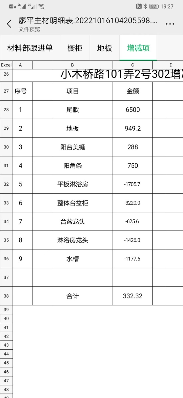 這張是我讓裝修公司退款他們又出來的增項(xiàng)