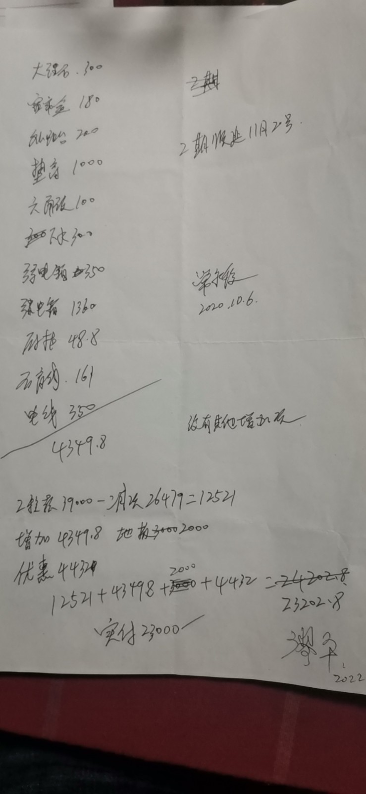 這是裝修公司副總在10月4號(hào)寫的新的協(xié)議。上面是他親筆寫的沒有增加項(xiàng)。