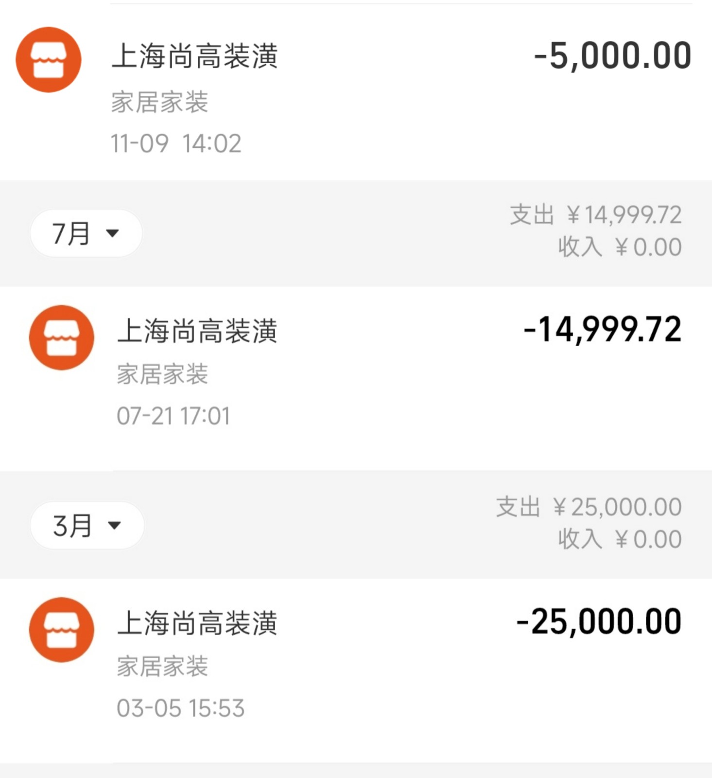 事后我們多次電話聯(lián)系總部韓店長(zhǎng),最后給的答復(fù)仍是他們開會(huì)研究我們的訴求。但是此后尚高就再也沒(méi)聯(lián)系過(guò)我們,直到最近,周榮龍以及手下的工人連續(xù)打電話問(wèn)我們討錢,并威脅我們不給錢就要破壞房屋,膠水堵鎖眼,不得已我們只能再次聯(lián)系韓店長(zhǎng),表示無(wú)論如何工人問(wèn)我們討錢是不合理不合規(guī)的,拖欠工人工錢的是你們尚高公司,而不是我們,我們已經(jīng)向尚高公司支付了算上支付的定金5千元以及一期款4萬(wàn)元一共4萬(wàn)5千元的工程款,事情搞到現(xiàn)在這地步,肯定已經(jīng)沒(méi)法讓你們?cè)偈┕は氯チ?,如果你們公司認(rèn)為我們還有錢沒(méi)付,那就應(yīng)該按實(shí)際已施工的項(xiàng)目來(lái)找我們結(jié)算,并對(duì)我們的損失進(jìn)行賠償,最后多退少補(bǔ),韓店長(zhǎng)表示此事她無(wú)能為力。,叫我們找徐總,卻又不肯提供聯(lián)系方式。