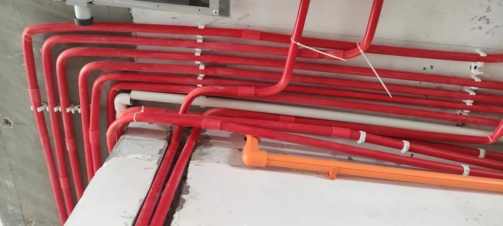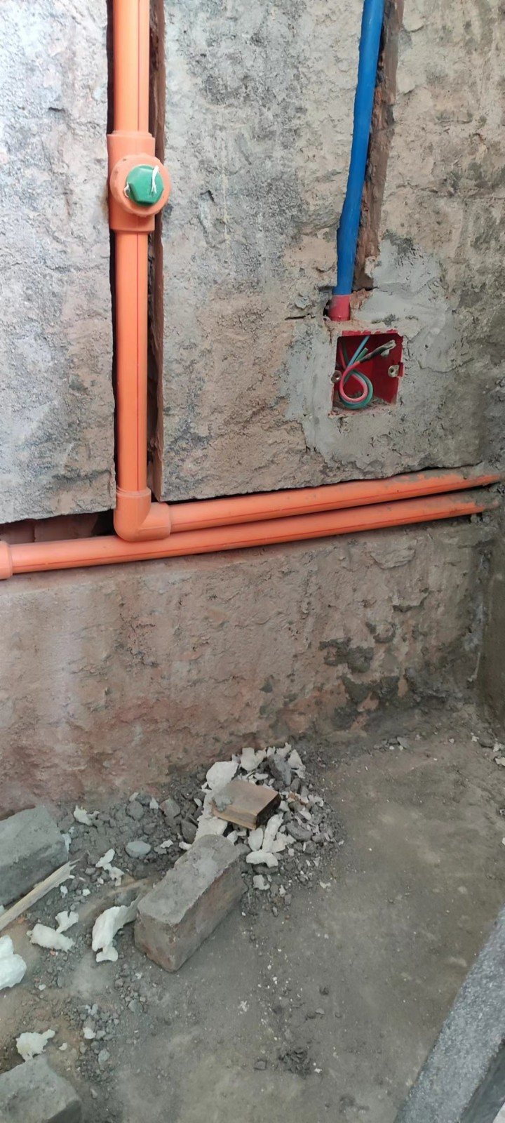 (1) 除了開橫槽以外,第一任項(xiàng)目經(jīng)理曹祝山的施工隊(duì)開水槽以及電線排線也極其不規(guī)范,造成多處冷熱水管同槽以及大量無(wú)法抽動(dòng)的死線。(圖五、圖六)