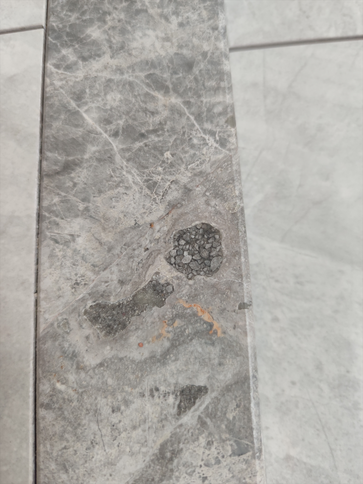 (4) 淋浴房擋水條疑似殘次品,有碎石子填補(bǔ)后打磨的痕跡(圖十五)