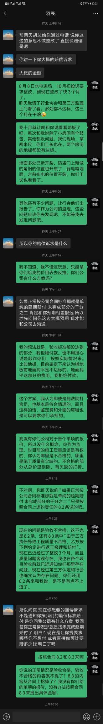 一啟目前給我的賠償標準是“如果正常按公司合同標準那就是單純的延期賠付 未完成部分的千分之二 ”,我認為他們是偷換概念,他這個標準是在驗收合格的情況下,而目前的情況是驗收不合格。且不說鐵錘宣傳上的內(nèi)容,經(jīng)第三方驗收,目前連國標行標都有違規(guī),涉及的是合同違約,他們的建議是沒有誠意的。