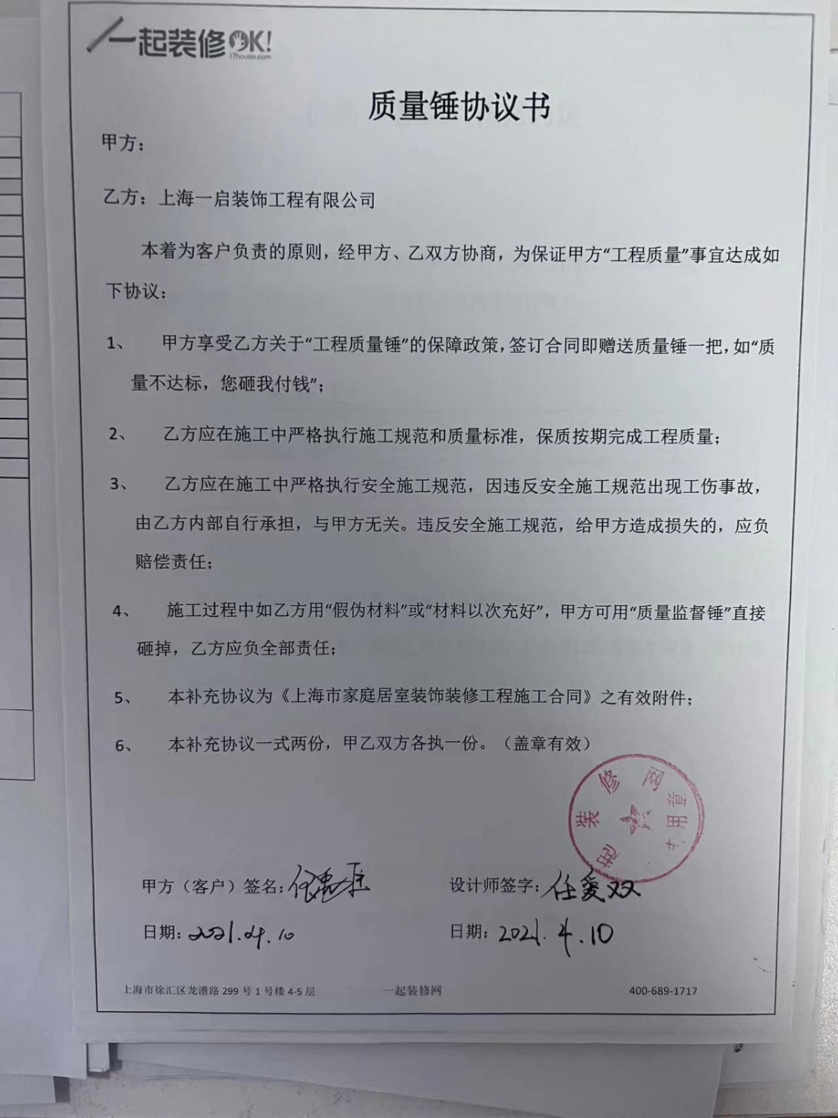 | 投訴類型 | 施工質(zhì)量 | 投訴人 | 任** | 被投訴單位 | 上海一啟裝飾工程有限公司 |