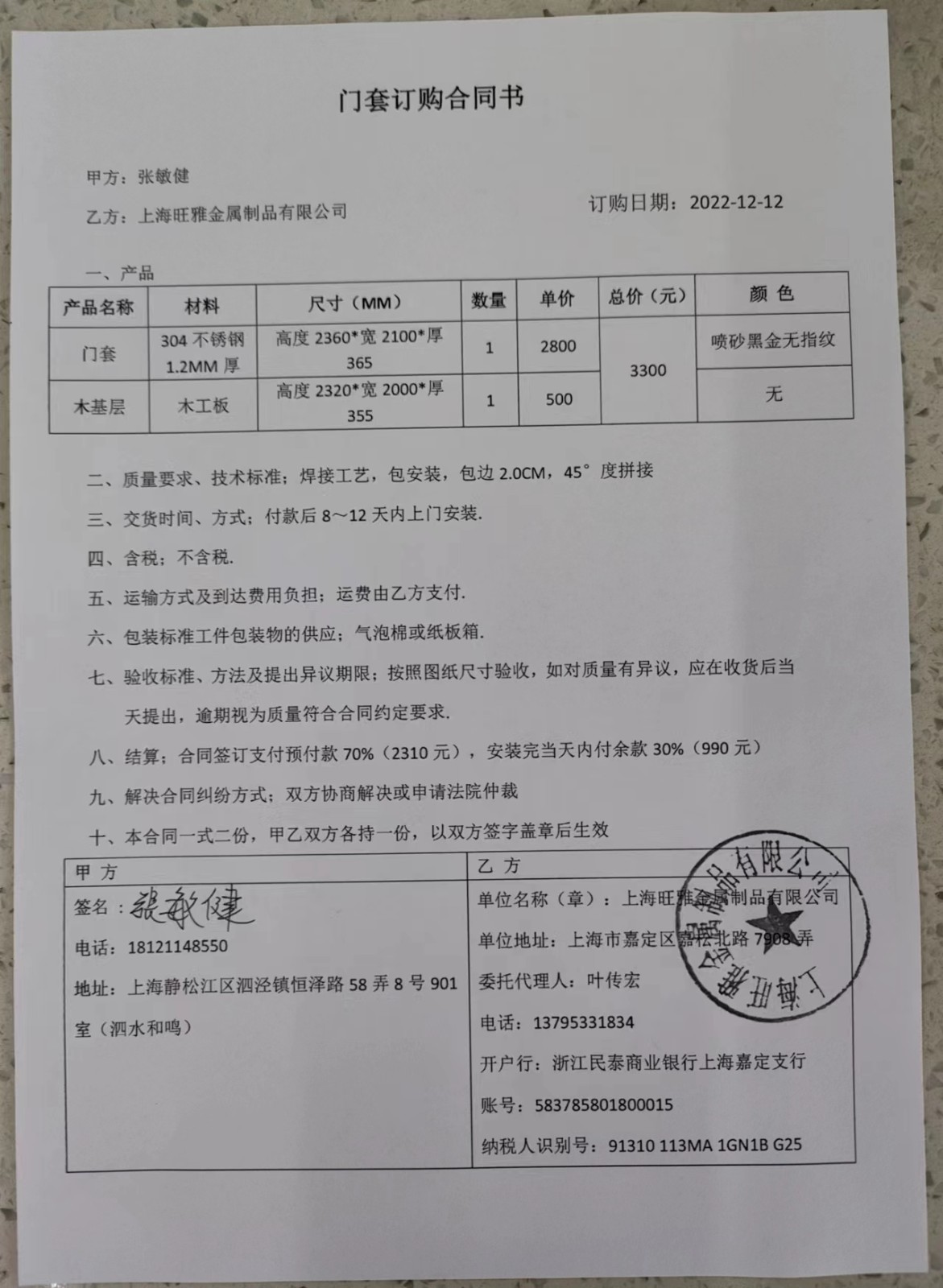 | 投訴類型 | 偷工減料 | 投訴人 | 張** | 被投訴單位 | 上海旺雅金屬制品有限公司 |