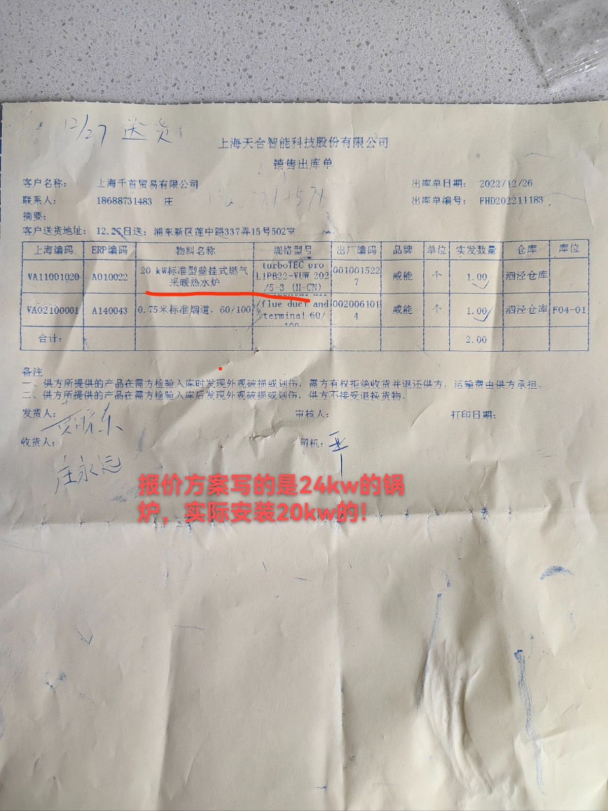 7. 地暖鍋爐安裝拖了42天才安裝,從22年11月22號一直到23年1月2號才安裝完成