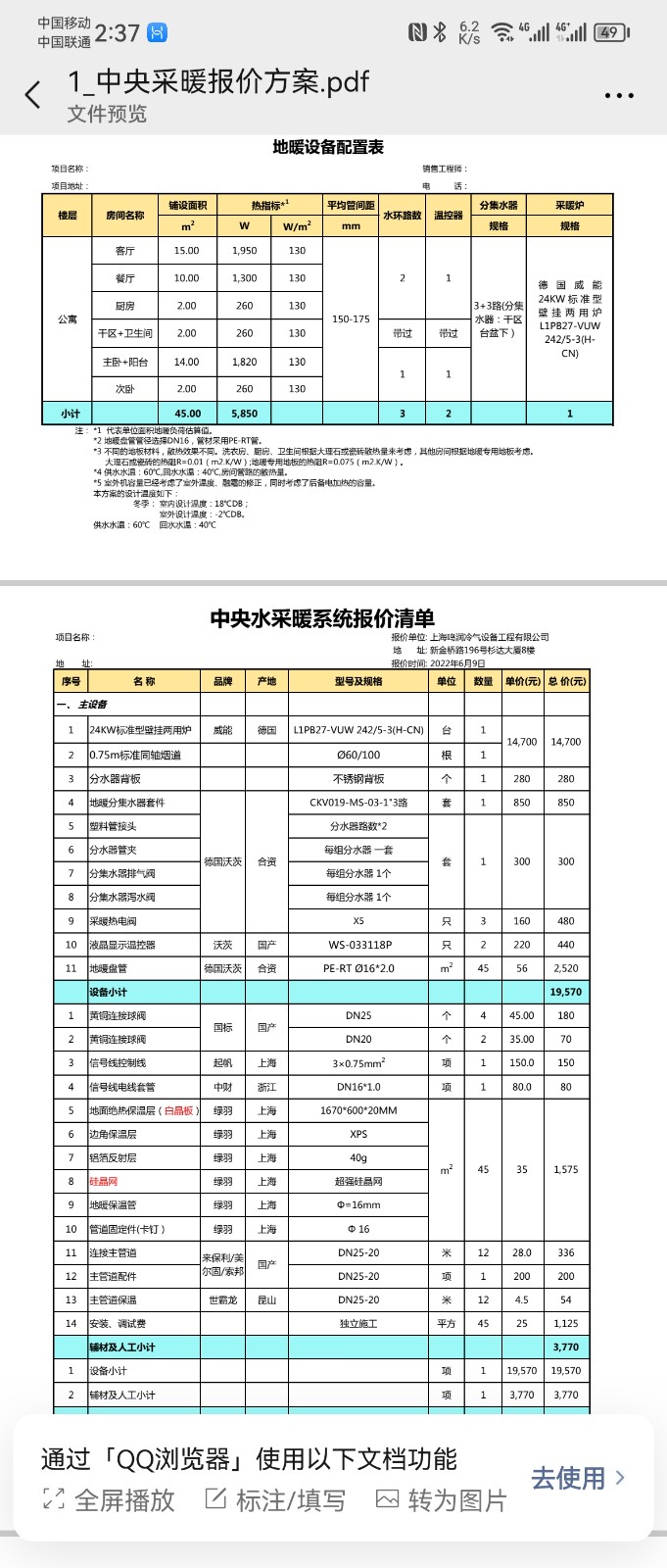 四、地暖鍋爐,乙方給我們的報價和方案是24kw的鍋爐,實際安裝的是20kw的鍋爐,中間的差價也從來沒有和我們說過