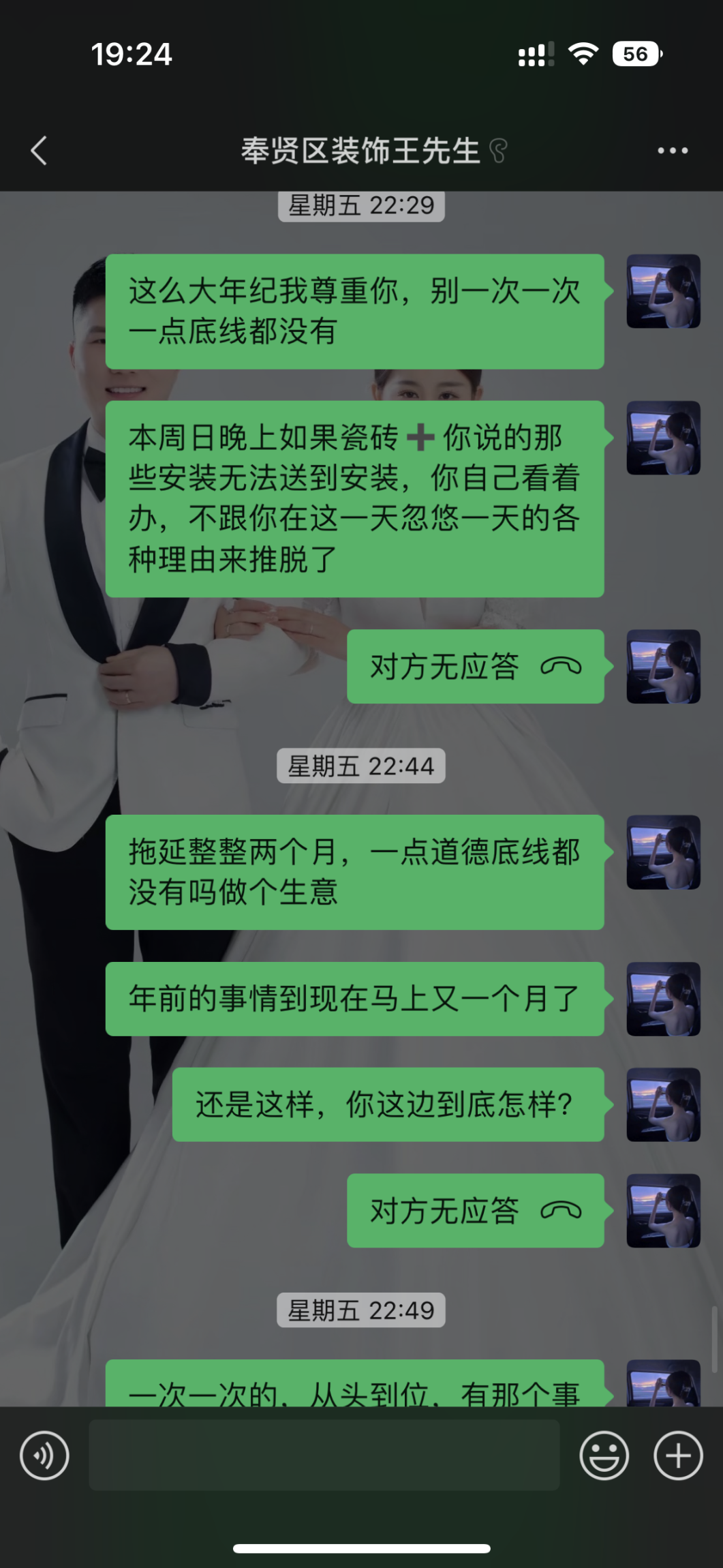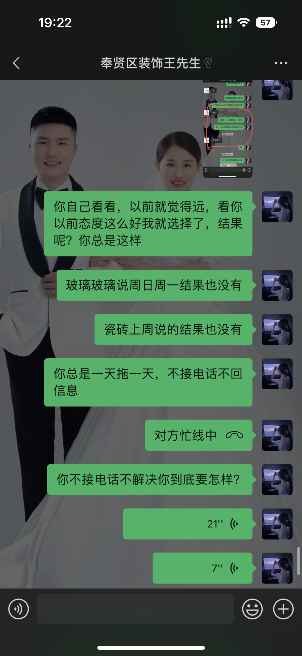 | 投訴類型 | 施工拖延 | 投訴人 | 徐** | 被投訴單位 | 上海靚視裝飾工程有限公司 |