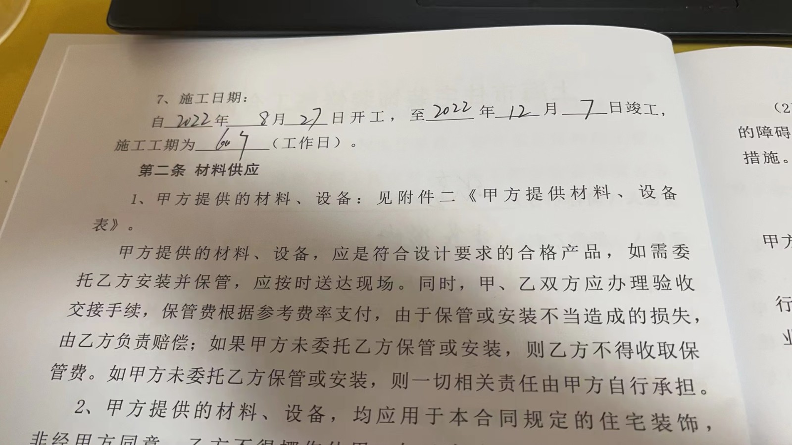 去年(2022年)和上海申萃建筑裝飾設(shè)計(jì)有限公司簽的裝修合同,本來是2022年12月7號(hào)裝修完工的。結(jié)果現(xiàn)在已經(jīng)2023年2月底了,還是沒有裝修完工!連衛(wèi)生間的門和廚房門都沒有裝?。。。?!