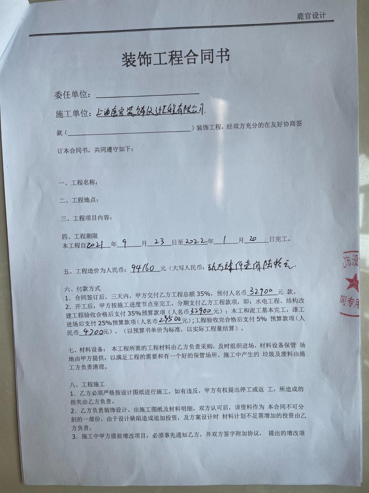 | 投訴類(lèi)型 | 合同糾紛 | 投訴人 | 吳** | 被投訴單位 | 上海鹿官裝飾設(shè)計(jì)工程有限公司 |