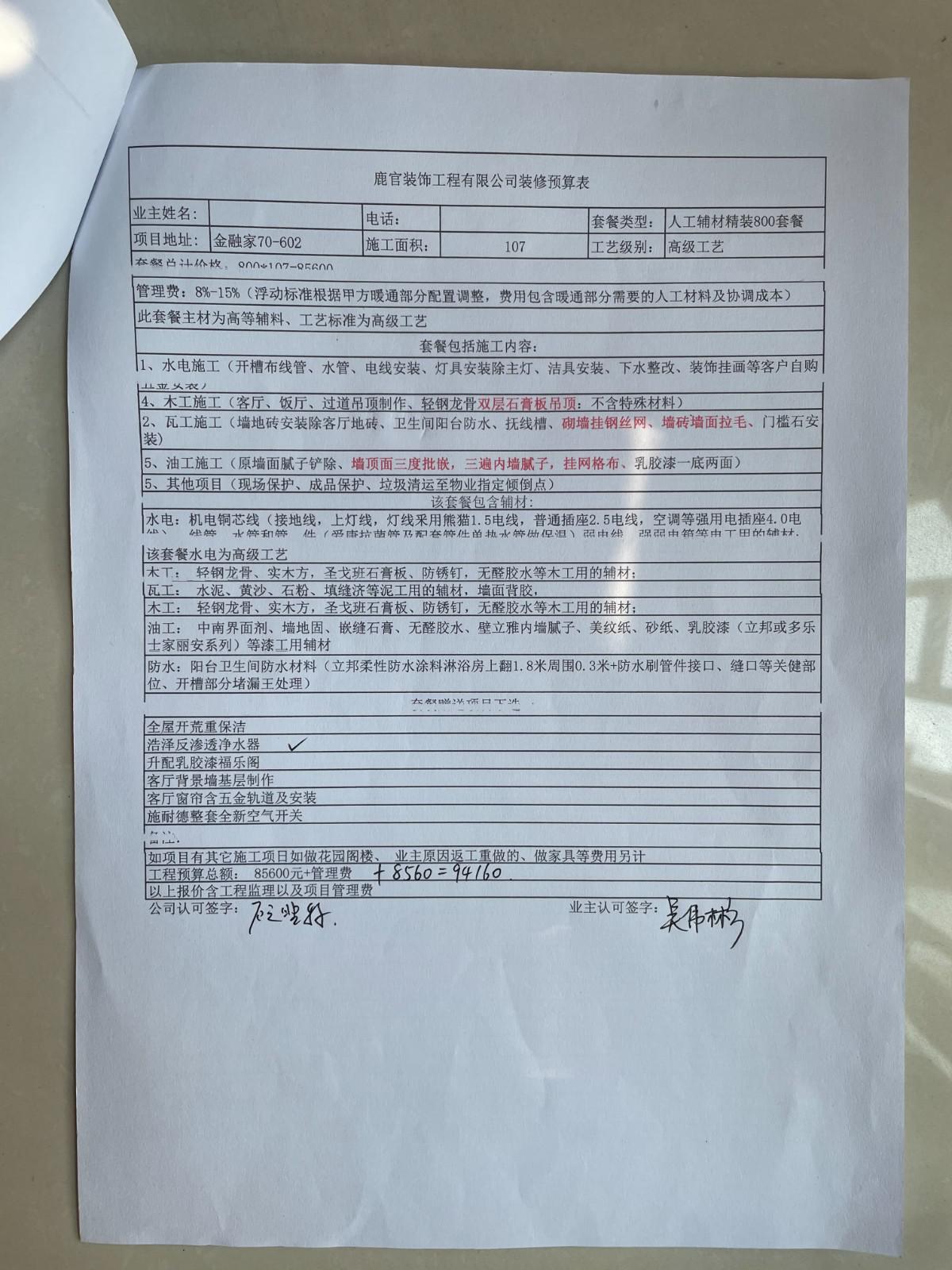 | 裝修造價(jià) | 9.41萬(wàn)元 | 裝修形式 | 半包 | 處理狀態(tài) | 處理中 |