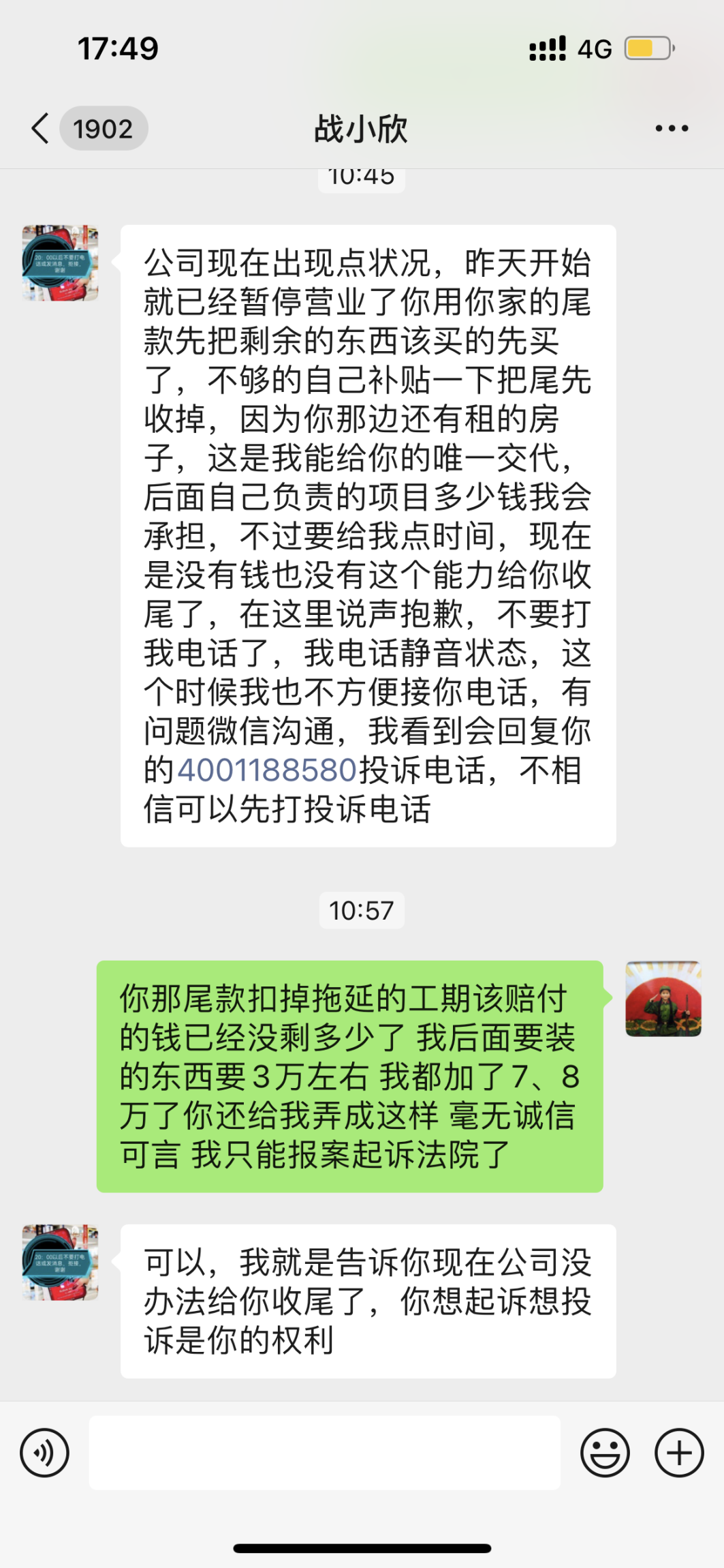 | 投訴類型 | 其它 | 投訴人 | 楊** | 被投訴單位 | 上海申萃建筑裝飾設(shè)計(jì)有限公司 |